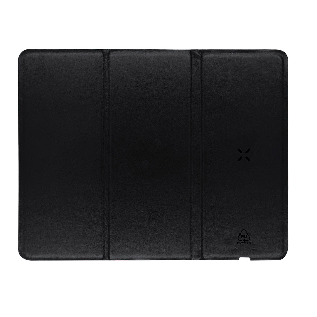 Alfombrilla plegable fabricada en suave PU Reciclada. Con cargador inalámbrico integrado de 10W. Compatible con dispositivos equipados con tecnología de carga inalámbrica. Base antideslizante y soporte multiposición para smartphone. Disponible en variados colores lisos. Con distintivo PU reciclado.La PU reciclada destaca por su resistencia y elasticidad. Este material reciclado y reciclable es una opción sostenible que rescata las fibras desechadas en los procesos de fabricación, minimizando así el desperdicio de material y contribuyendo a su vez a reducir el impacto ambiental, manteniendo a la vez sus propiedades originales.Fabricado conforme a los estándares RoHS y en cumplimiento con los siguientes requisitos de seguridad:Sistema de protección contra sobrecalentamiento. Sistema de protección contra sobrecarga. Sistema de bloqueo para evitar cortocircuitos. Inalámbrico 10W. Plegable. Antideslizante PU Reciclada/ Antelina