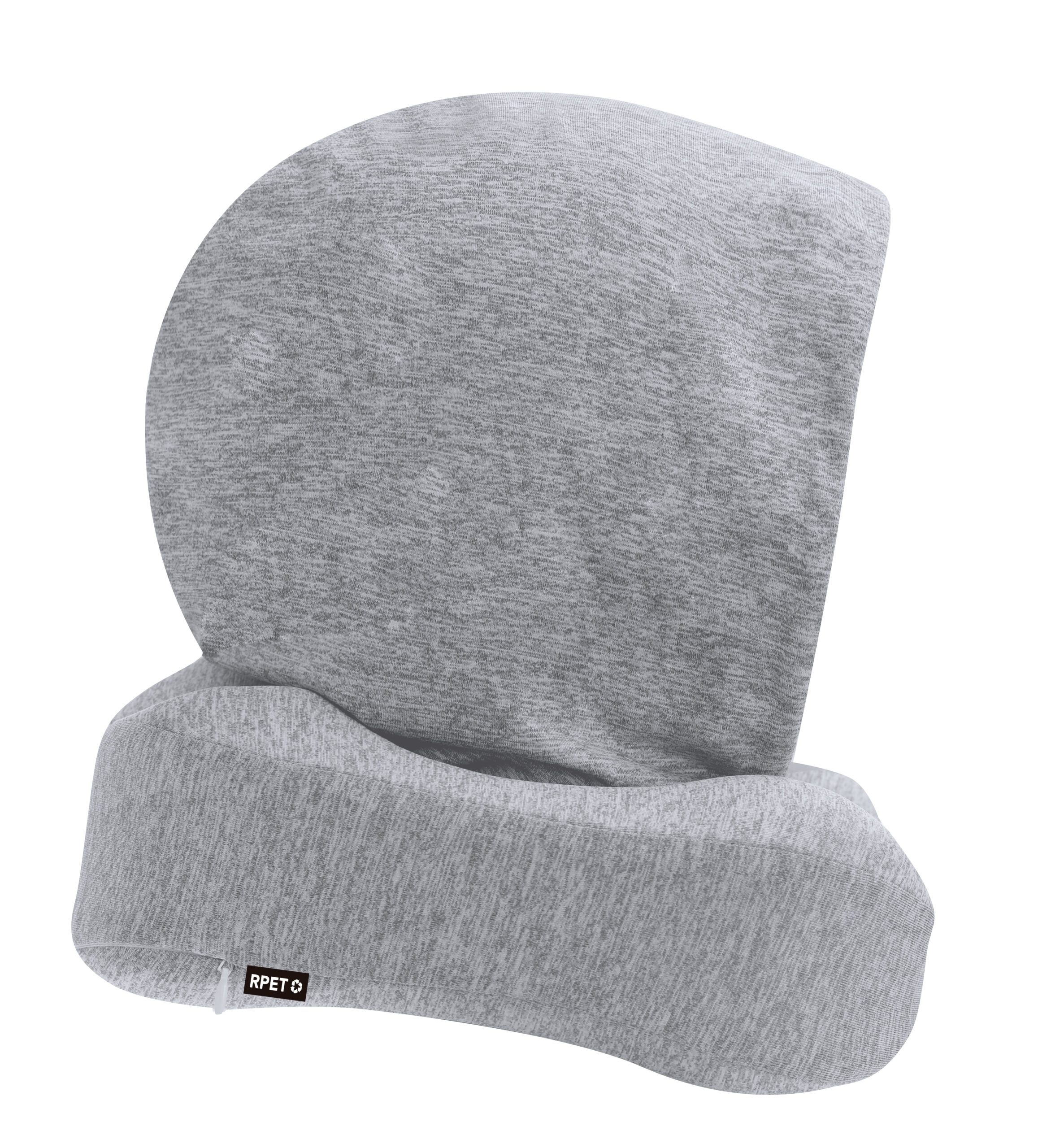 Almohadilla fabricada en suave tejido de RPET, con un esponjoso relleno adaptable. Con capucha para mayor calidez y equipada con accesorio de ajuste personalizado, asa de transporte y funda de almacenamiento. Incluye distintivo de RPET en etiqueta.El material RPET se elabora a partir de plástico reciclado, para así fomentar la reutilización de residuos plásticos y ayudar a la sostenibilidad del planeta. Funda Poliéster RPET Poliéster RPET