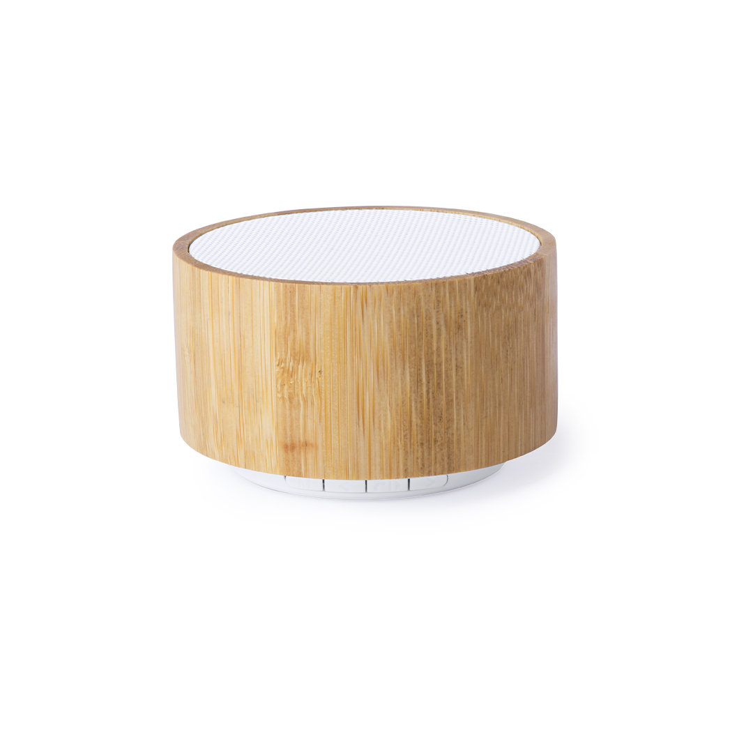 Compacto altavoz con cuerpo en bambú y conexión Bluetooth. Con 3W de potencia, función manos libres, radio FM, una ranura para tarjetas mini SD y base antideslizante. Recargable mediante cable USB -incluido- y presentado en una atractiva caja de diseño. Conexión Bluetooth. Potencia Sonido 3W. Batería 300 mAh Bambú/ ABS