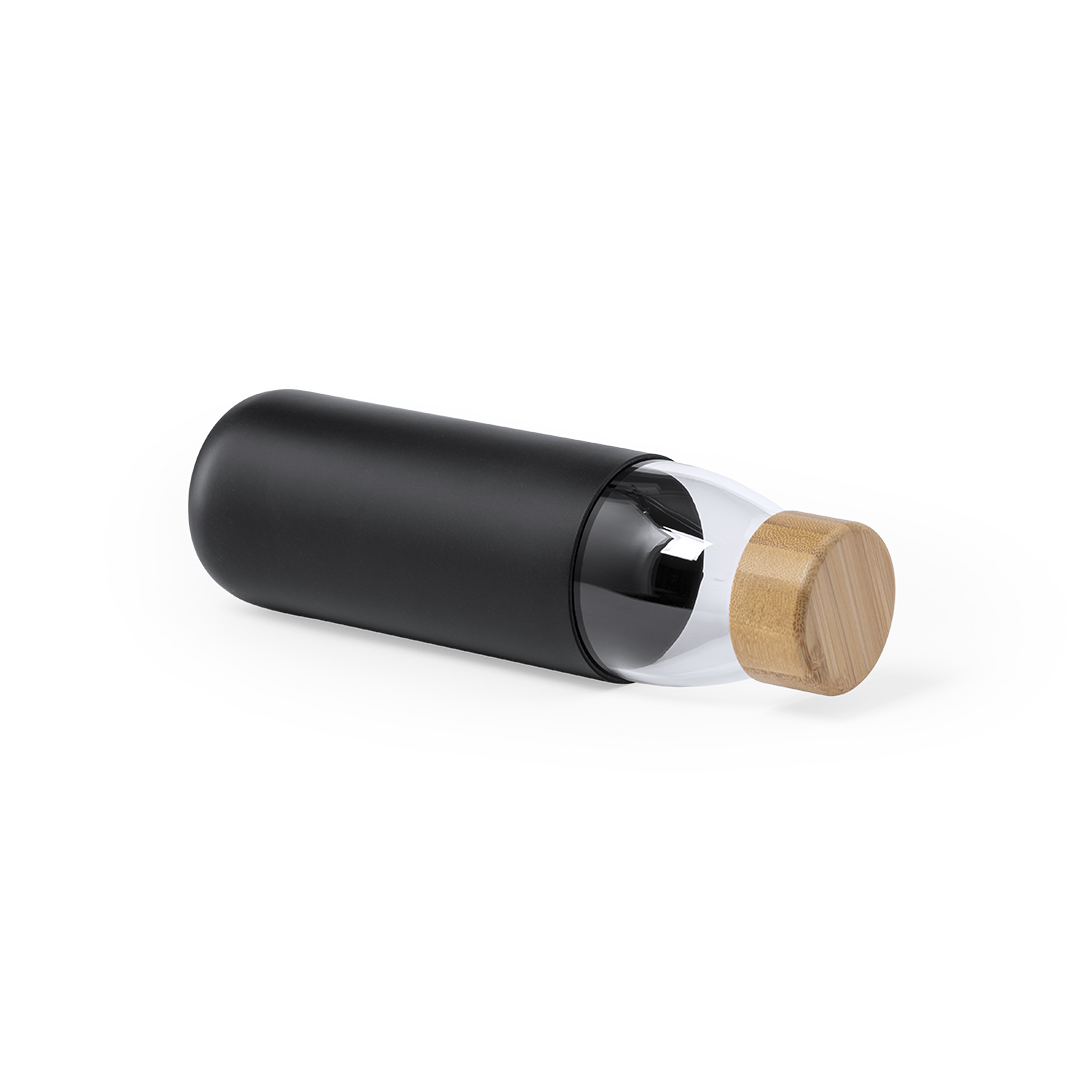 Bidón de línea nature de 540ml de capacidad. Fabricado con cuerpo de cristal y tapón a rosca de bambú. Incluye funda de silicona y viene presentado en caja individual de atractivo diseño. 540 ml. Funda Silicona Cristal/ Bambú