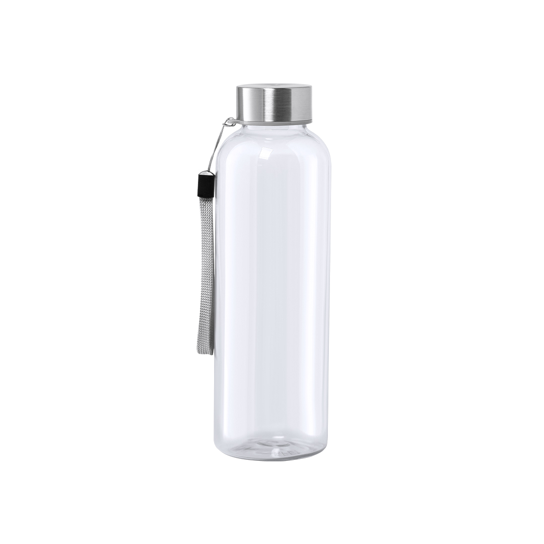 Bidón fabricado en RPET de 600ml de capacidad, libre de BPA. Tapón a rosca en acero inox, con cordón de transporte. Disponible en variada gama de colores.Elaborado a partir de plástico reciclado, para así fomentar la reutilización de residuos plásticos y ayudar a la sostenibilidad del planeta. 600 ml RPET/ Acero Inox