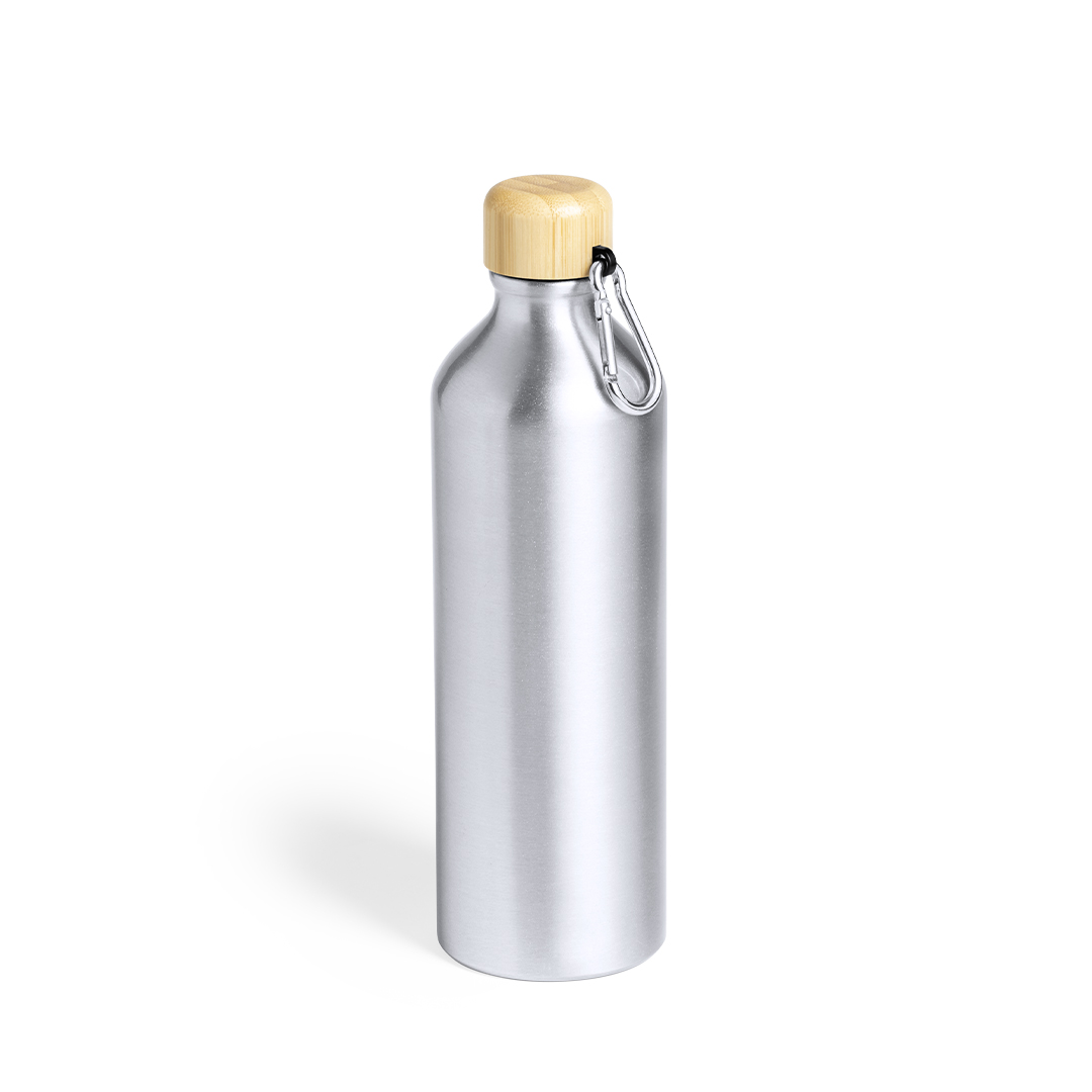 Bidón de línea nature y 800 ml de capacidad. Cuerpo en aluminio de acabado mate y tapón de bambú con mosquetón a juego para fácil transporte. Libre de BPA y presentado en atractiva caja de diseño eco. 800 ml Aluminio/ Bambú