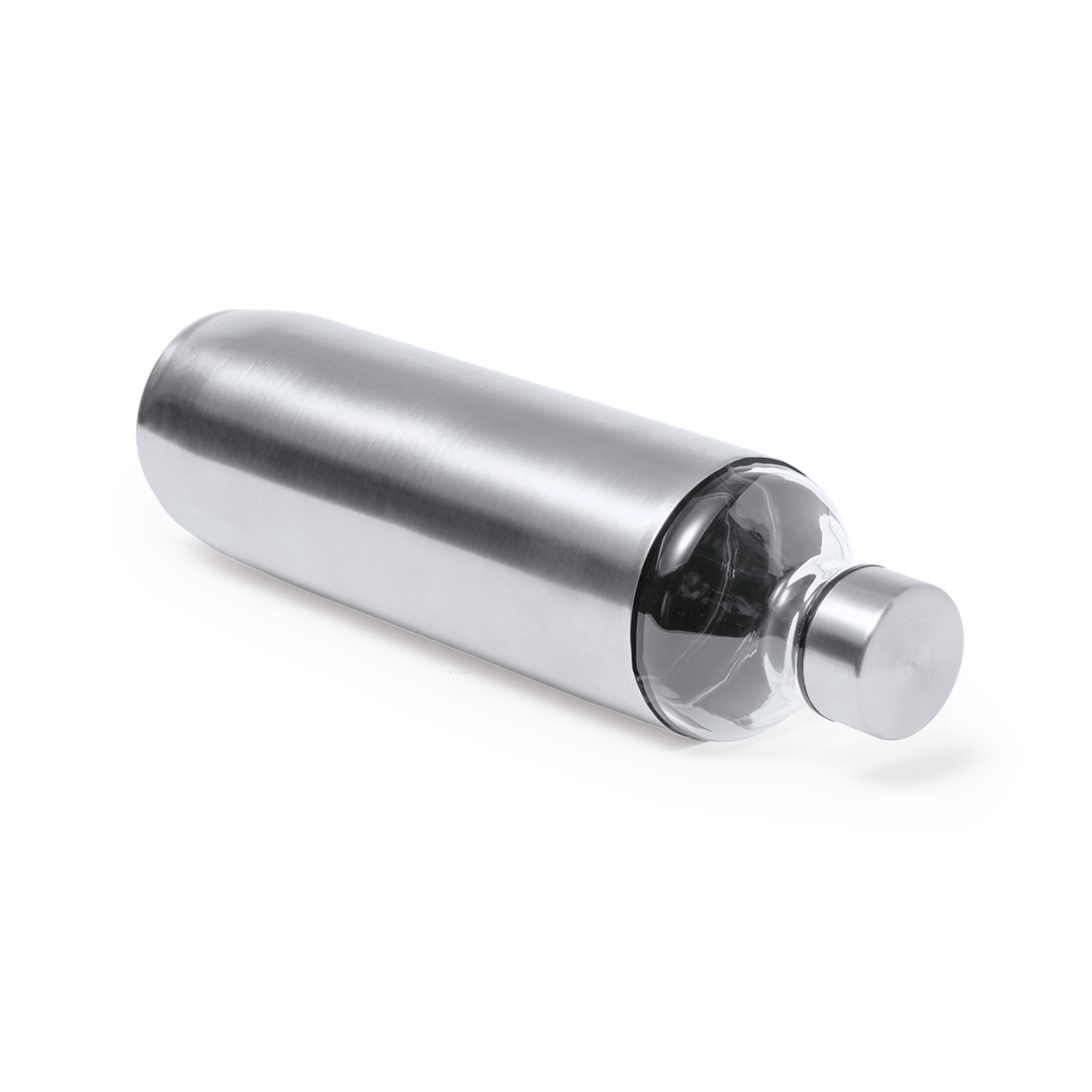 Bidón de diseño en alta calidad, de 850 ml de capacidad. Fabricado en cristal de borosilicato, que ofrece una resistencia, estética y durabilidad excepcionales, alargando su vida útil y pudiendo ser reutilizado infinidad de veces. Tapón y funda del cuerpo del bidón en acero inox. Presentado en atractiva caja de diseño. 850 ml Cristal Borosilicato/ Acero Inox