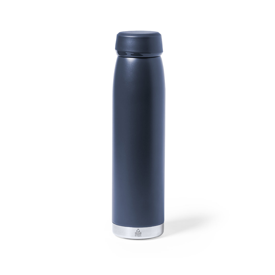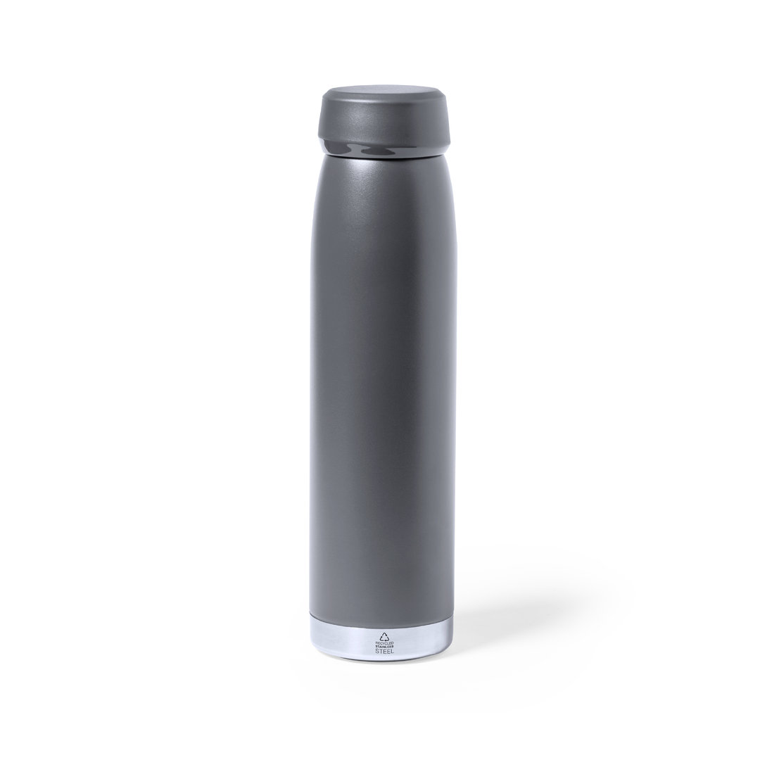 Bidón térmico de 380 ml de capacidad, fabricado en acero inox reciclado de doble pared, con tapón a rosca a juego y base en plata. Disponible en variada gama de colores satinados, libre de BPA y presentado en caja individual de diseño kraft. El acero es uno de los materiales más demandados y que puede encontrarse casi en todas partes, desde productos de uso diario a grandes construcciones. Con innumerables propiedades, entre las que cabe destacar la durabilidad y su alto grado de reutilización, convirtiéndolo en una alternativa muy valorada en soluciones de sostenibilidad. Debidamente tratado, permite obtener nuevos recursos de infinita utilización. 380 ml Acero Inox Reciclado