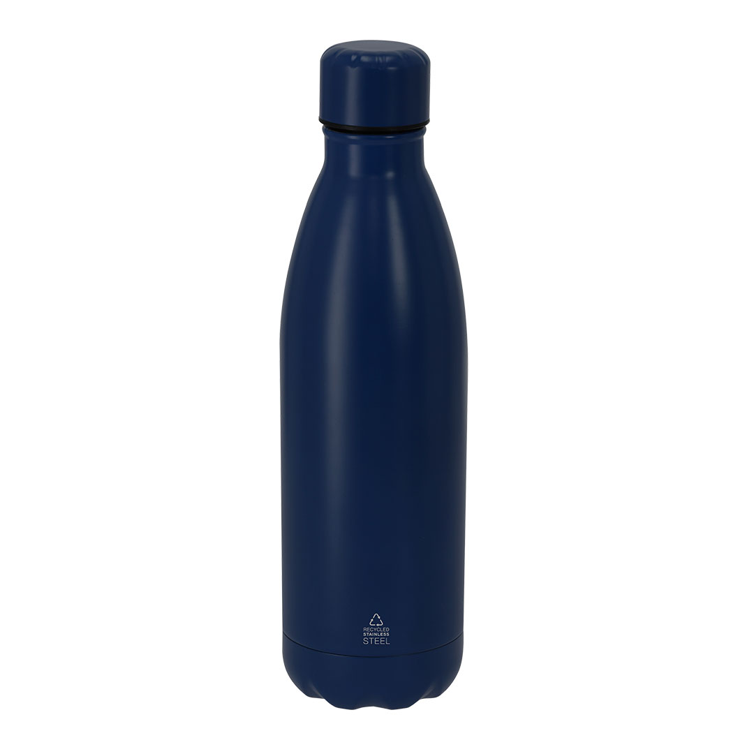 Bidón térmico de 500 ml de capacidad, fabricado en acero inox reciclado de doble pared. Su diseño combina cuerpo con tapón a rosca en color a juego con acabado mate. Libre de BPA. Incluye distintivo de acero inox reciclado. 500 ml Acero Inox Reciclado