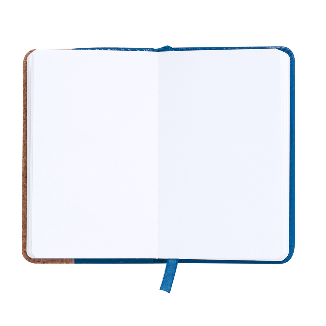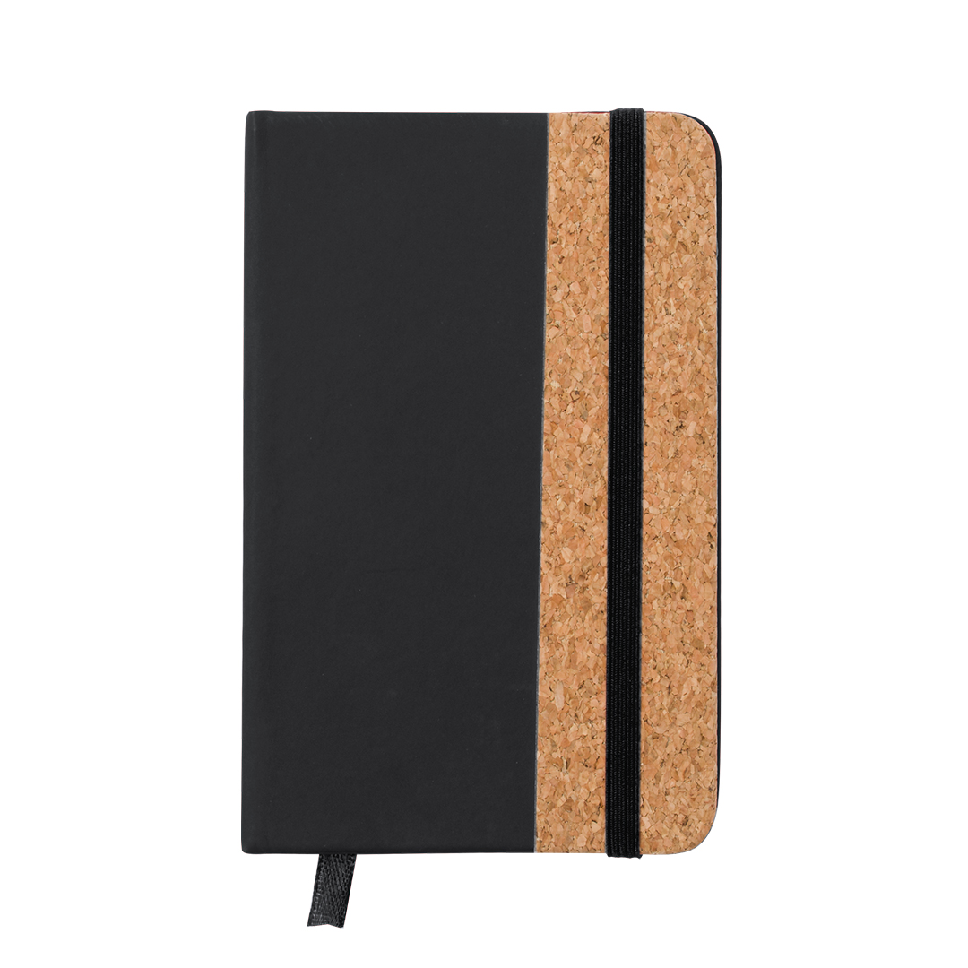 Bloc de notas con tapas rígidas elaboradas con suave corcho. Incluye 80 hojas lisas con elástico de sujeción y marcapáginas de tela a juego. Disponible en amplia gama de colores, con tacto exterior en combinación de corcho natural y polipiel. Presentado en bolsa individual. Elaborado con elementos vegetales para así fomentar la utilización de materias primas naturales y reducir las emisiones contaminantes. Portada Rígida. 80 Hojas Corcho/ Polipiel