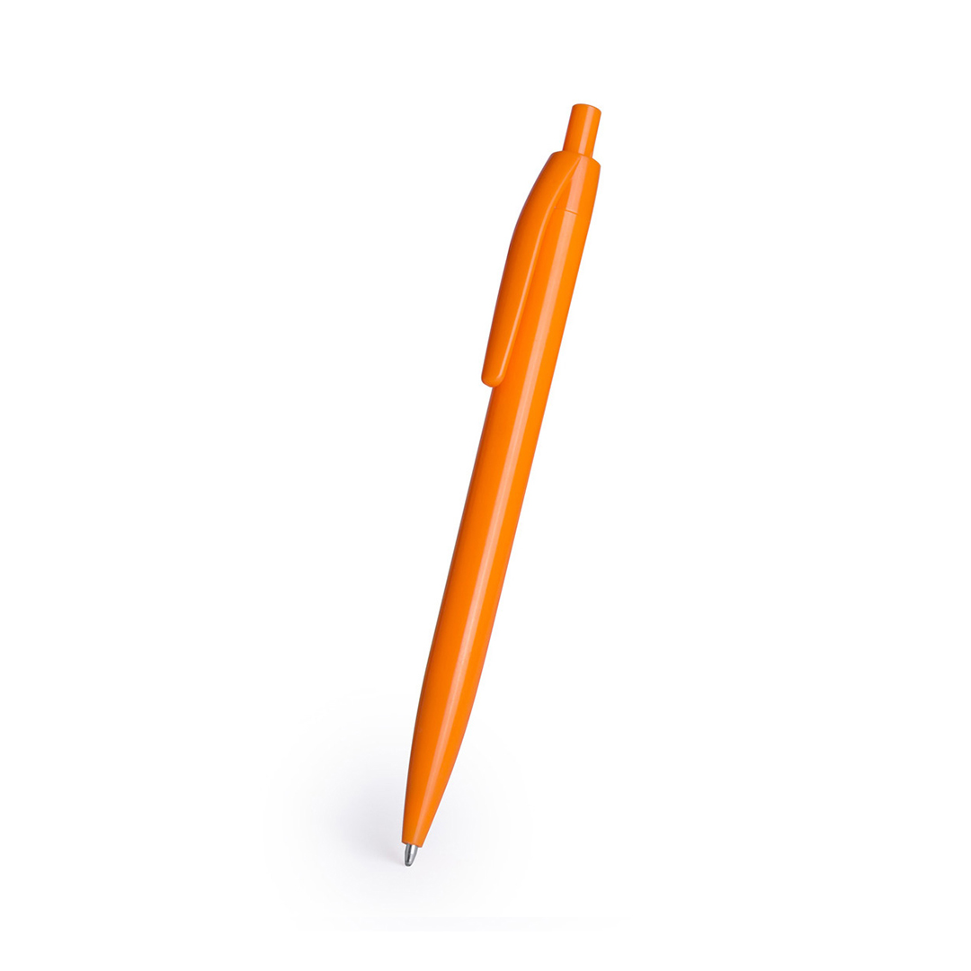 Bolígrafo de mecanismo pulsador con diseño monocolor en variada gama de vivos colores con acabado brillante. Tinta azul.