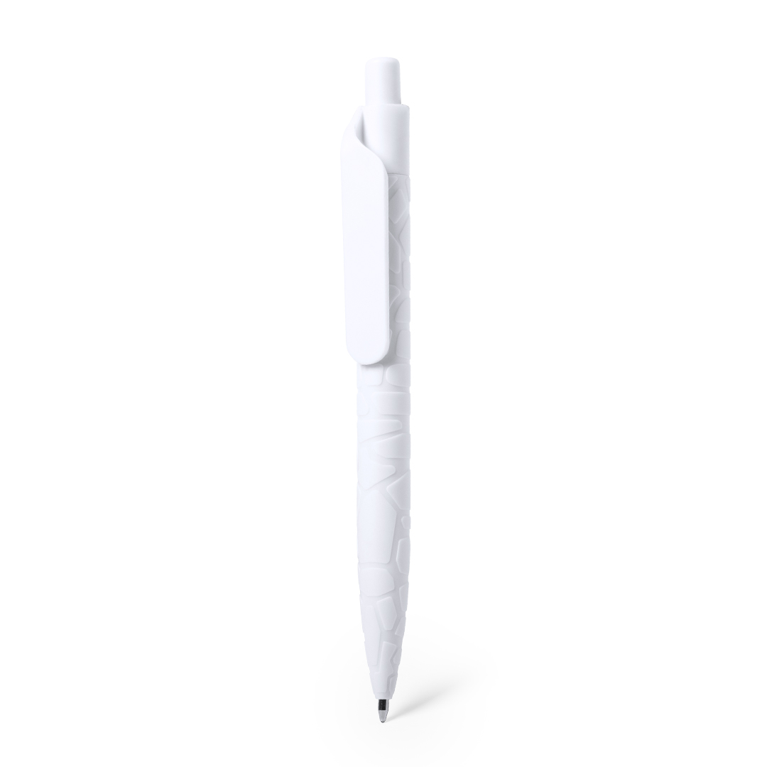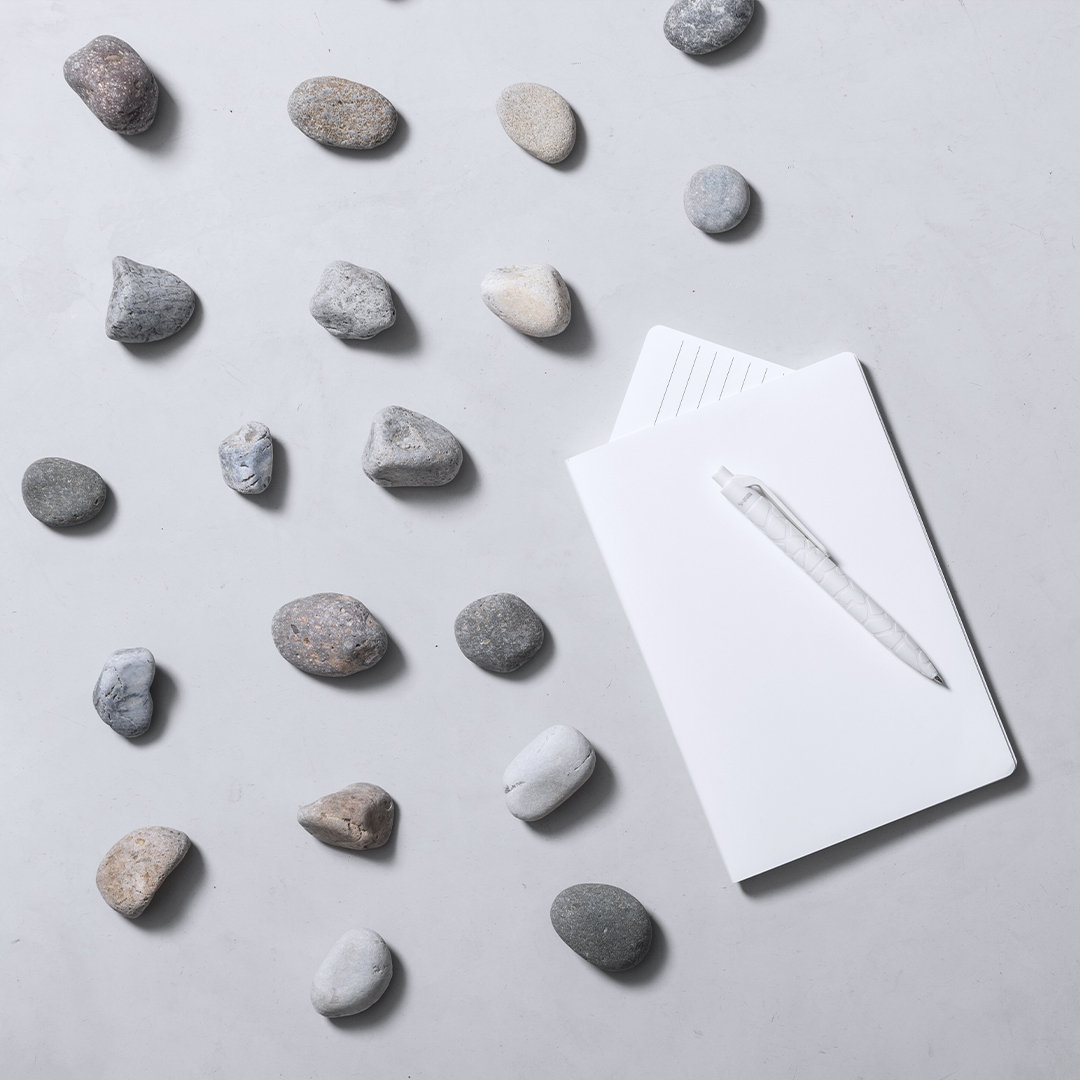 Bolígrafo de línea nature y mecanismo pulsador. Cuerpo troquelado fabricado con extractos de piedra natural, ayudando a la reducción del uso de plásticos, además de proporcionar un acabado suave y resistente. En color blanco y con distintivo natural stone en la parte superior, de cartucho jumbo y en tinta azul. Carga Jumbo Extractos de Piedra Natural/ PP