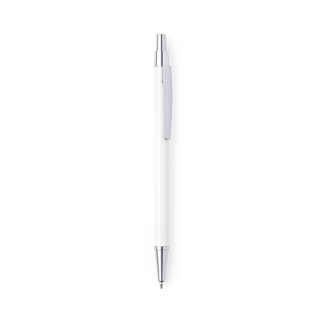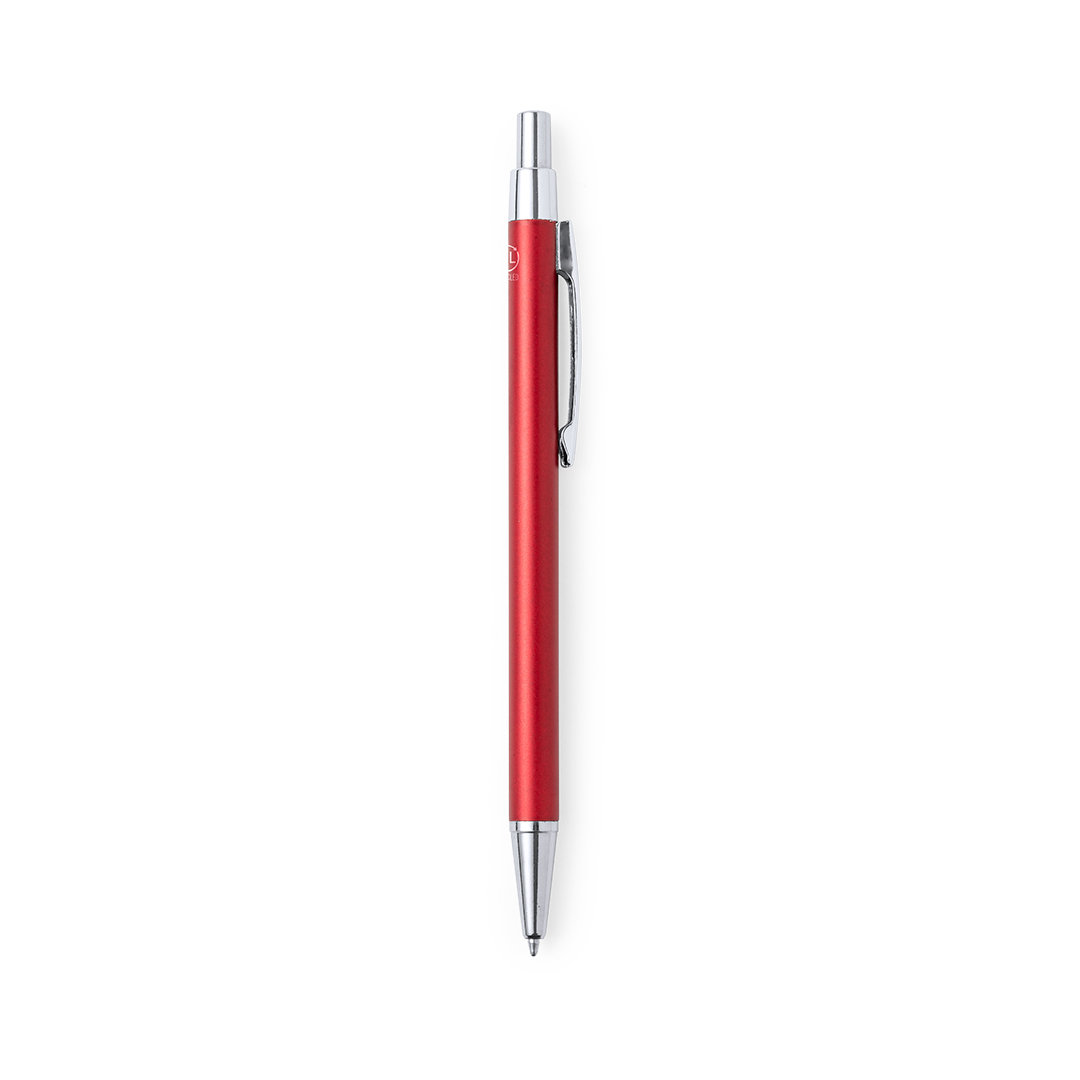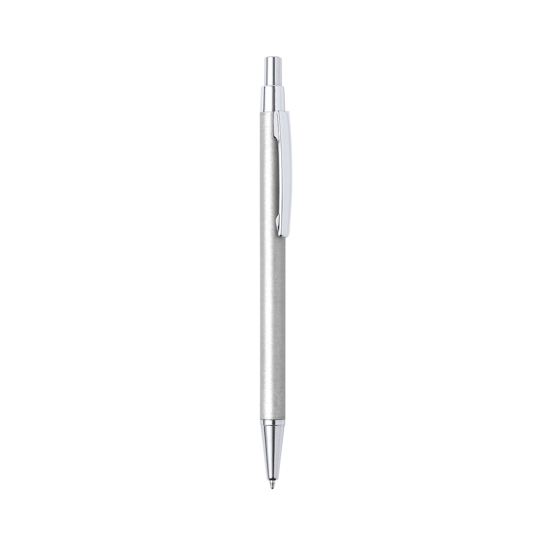 Bolígrafo eco-friendly fabricado en aluminio reciclado, cuyo origen se encuentra en la reutilización casi infinita de uno de los materiales con mayor potencial de reciclabilidad sin perder sus propiedades. Esta característica lo convierte en un material eco-friendly de origen reciclado, fácilmente reciclable y de cuyos procesos de tratamiento y desechos para la obtención del material se pueden obtener nuevos recursos reutilizables, consumiendo menos energía en su fabricación, entre otros factores de sostenibilidad. De mecanismo pulsador, con cuerpo disponible en variada gama de colores metalizados y accesorios en cromado. Con clip metálico, tinta azul y distintivo aluminio reciclado en la parte superior del bolígrafo. Certificación GRS (Global Recycled Standard / Estándar de Reciclaje Global), que garantiza el origen reciclado del material usado para fabricar el producto.     Aluminio Reciclado