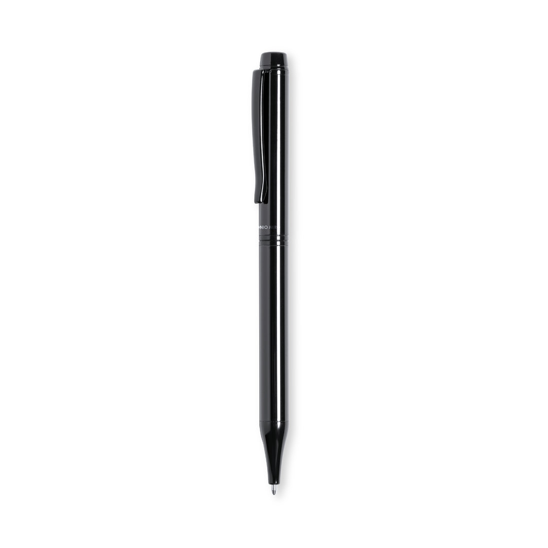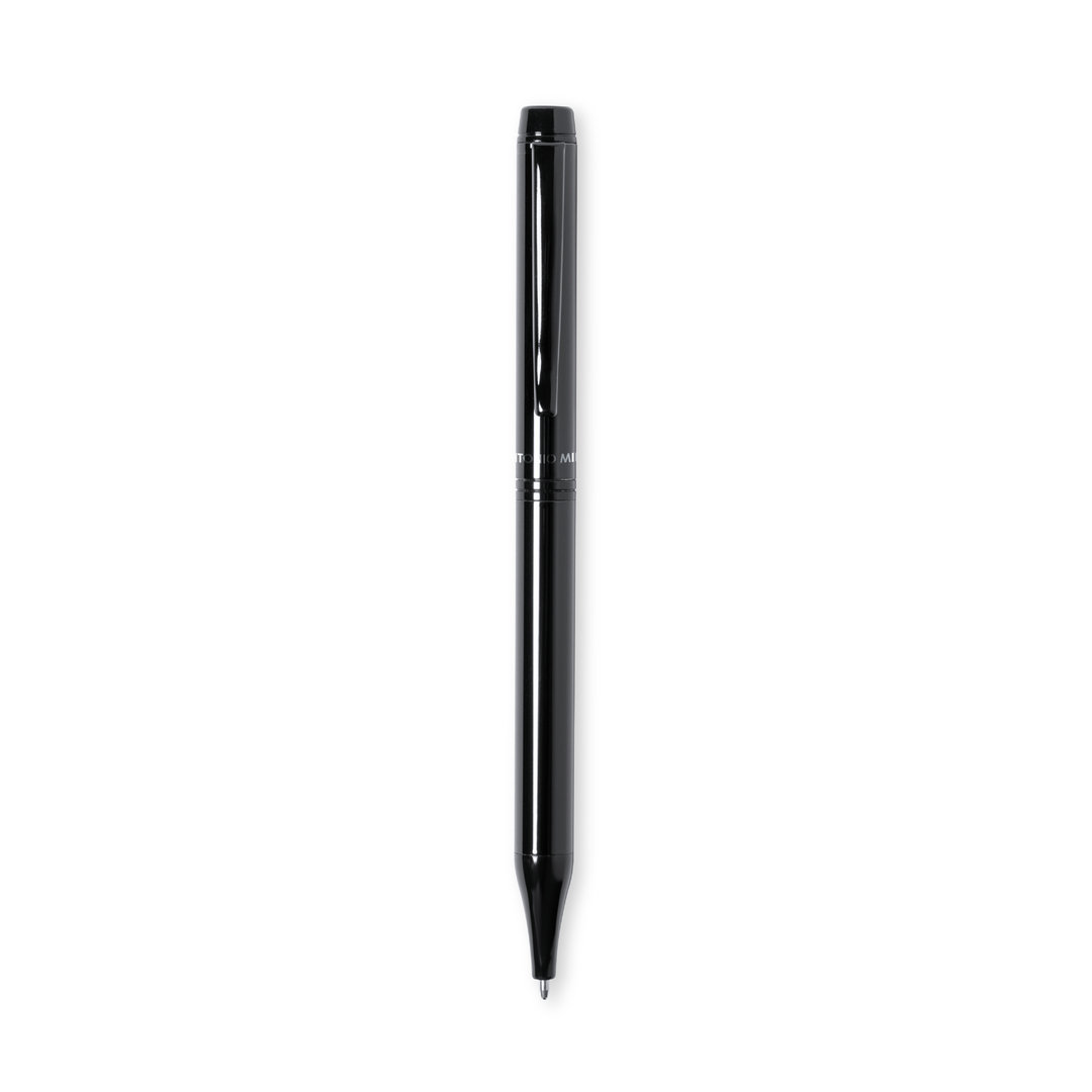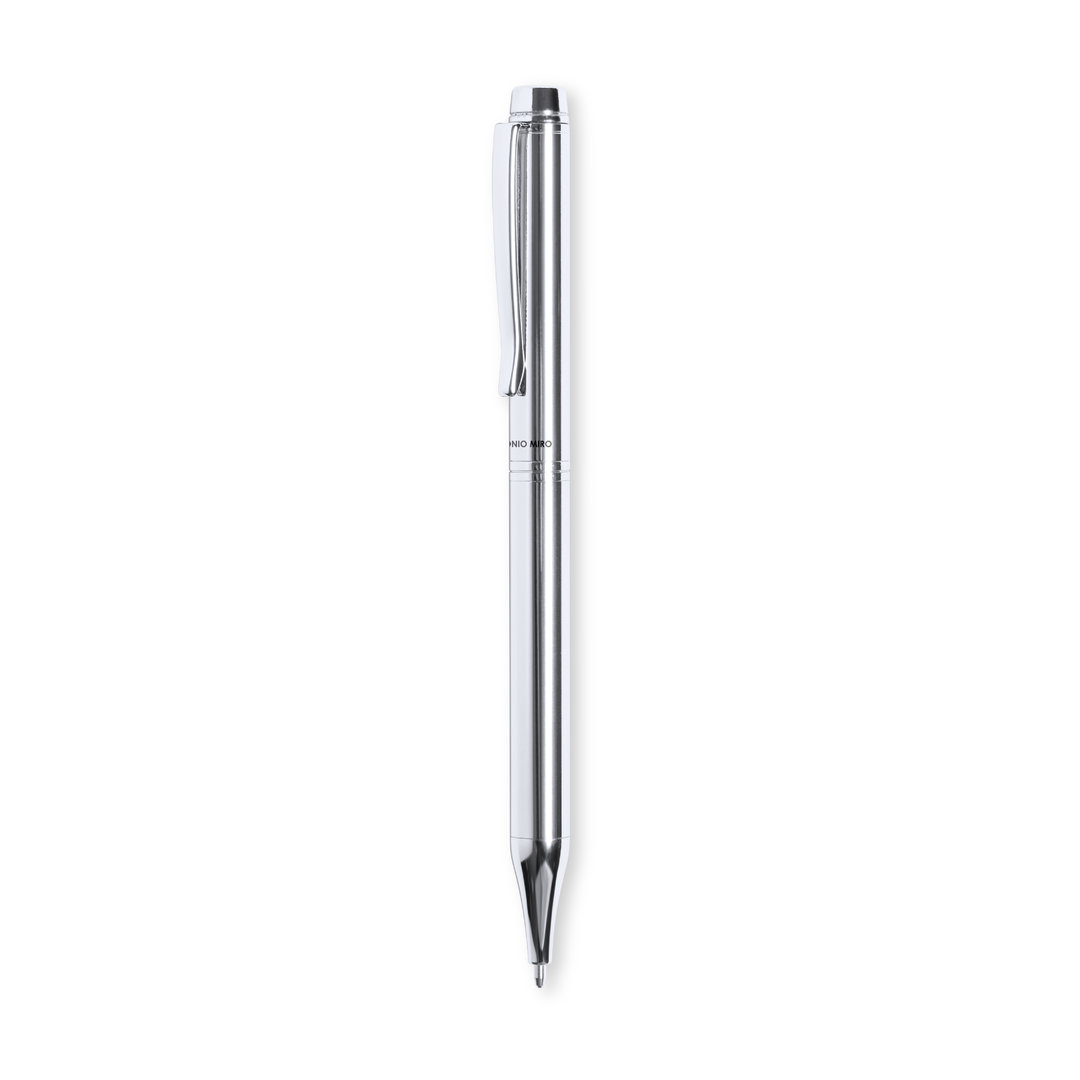 Bolígrafo de Antonio Miró fabricado en metal de acabado brillante, con logotipo de la marca en cuerpo y disponible en variada gama de colores. Con mecanismo giratorio y en tinta azul. Presentado en elegante y resistente caja individual negra con logotipo Antonio Miró y funda a juego.     Metal