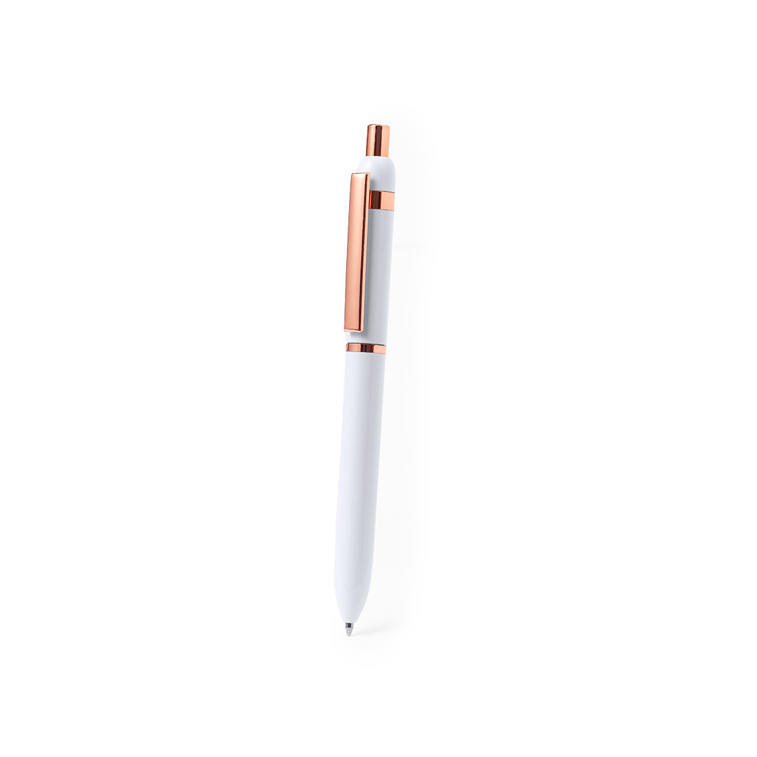 Elegante bolígrafo especialmente diseñado para el marcaje en láser con logotipo en color rosado. De mecanismo pulsador, clip metálico y accesorios en acabado cobre, con detalles plásticos en acabado rosado. Con cartucho jumbo y en tinta azul. Disponible en dos distintivos colores.Presentado en elegante caja de diseño negra. Carga Jumbo Aluminio/ ABS/ Metal