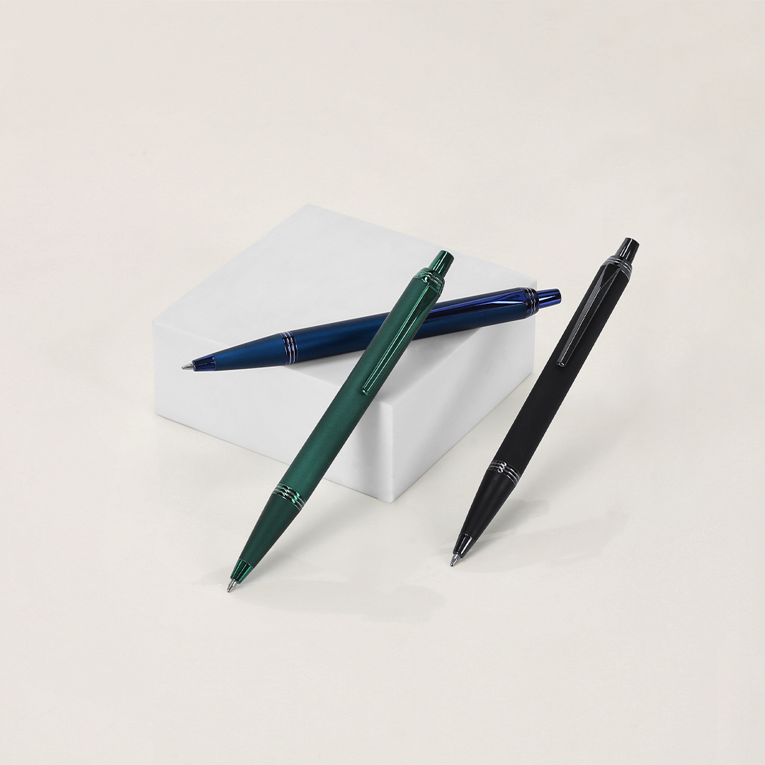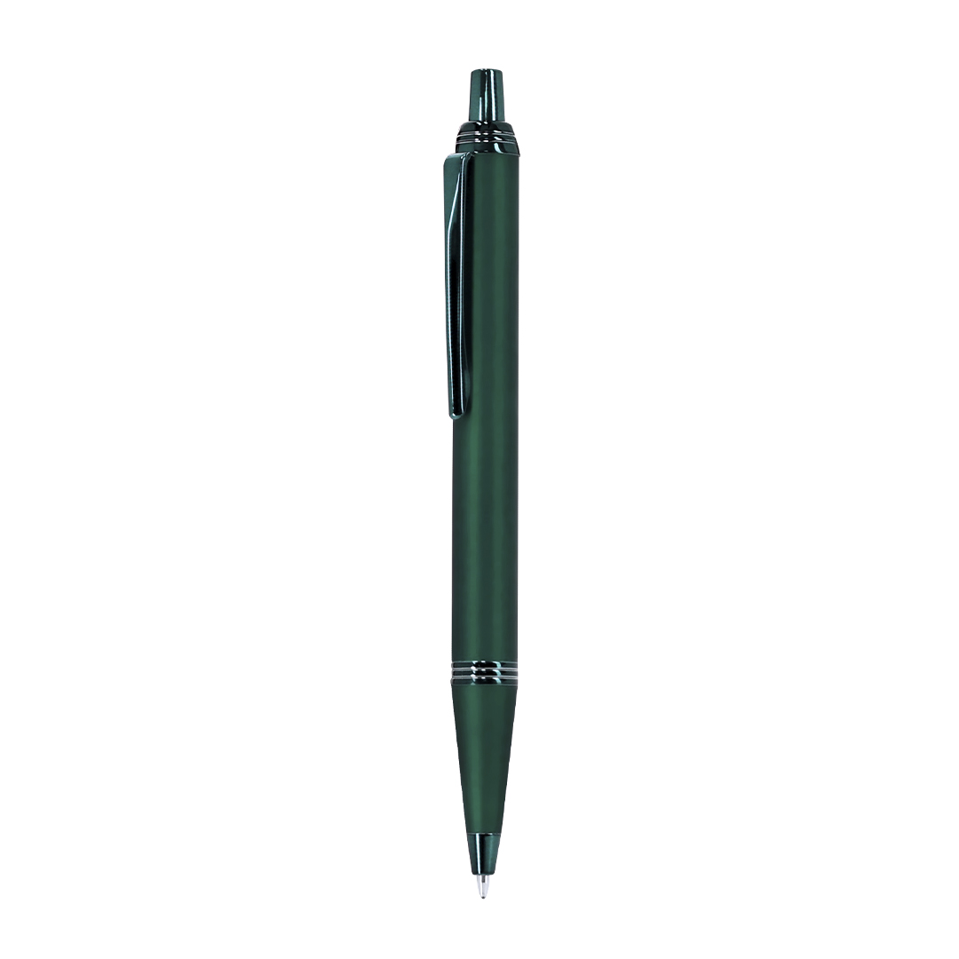 Bolígrafo con cuerpo en aluminio, acabado gomoso y detalles cromados. De mecanismo pulsador, con cartucho jumbo y tinta azul. Carga Jumbo Aluminio