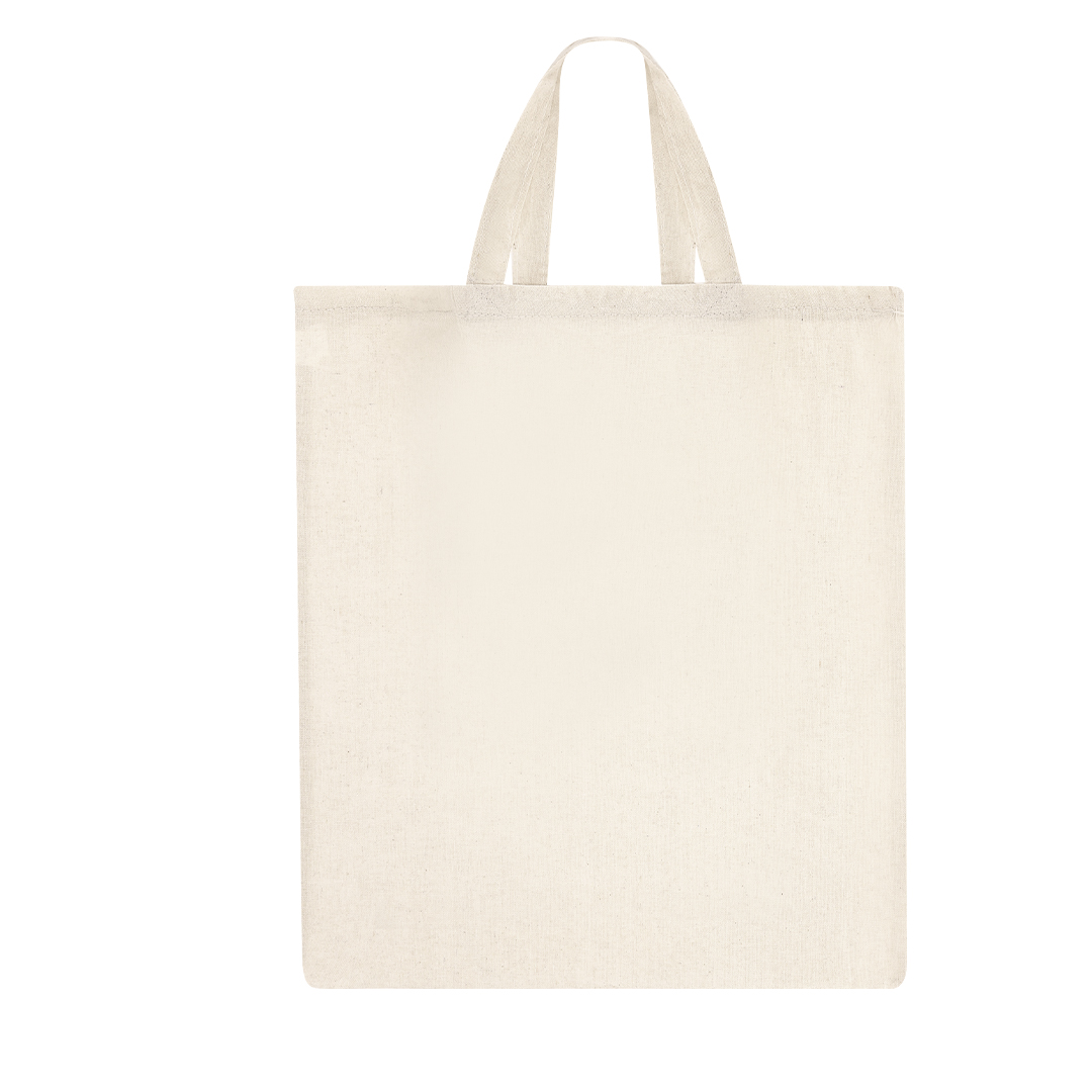 Bolsa en material 100% algodón con acabado en color natural. Con asas cortas de 35cm y acabado cosido. Resistencia hasta 7kg de peso. 100% Algodón 105 g/ m2