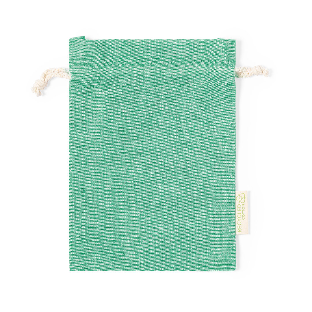 Bolsa eco-friendly en resistente material 100% algodón reciclado GRS de 120g/m2. Certificación GRS (Global Recycled Standard / Estándar de Reciclaje Global), que garantiza el origen reciclado del material usado para fabricar el producto. Cierre de cordón de algodón y acabado cosido, incluye etiqueta exterior con distintivo algodón reciclado. 100% Algodón Reciclado 120 g/ m2