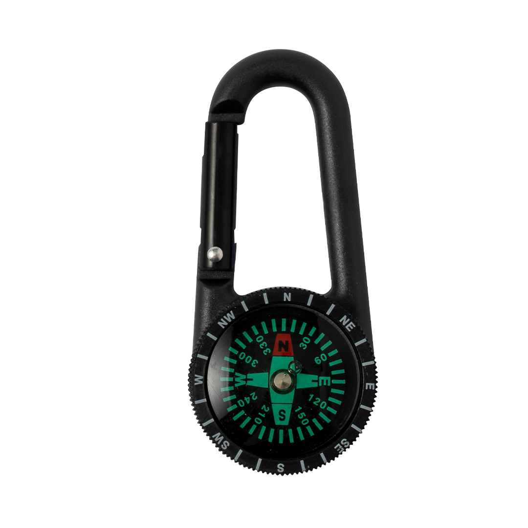 Brújula mosquetón en vivos colores con cuerpo de suave y resistente acabado.