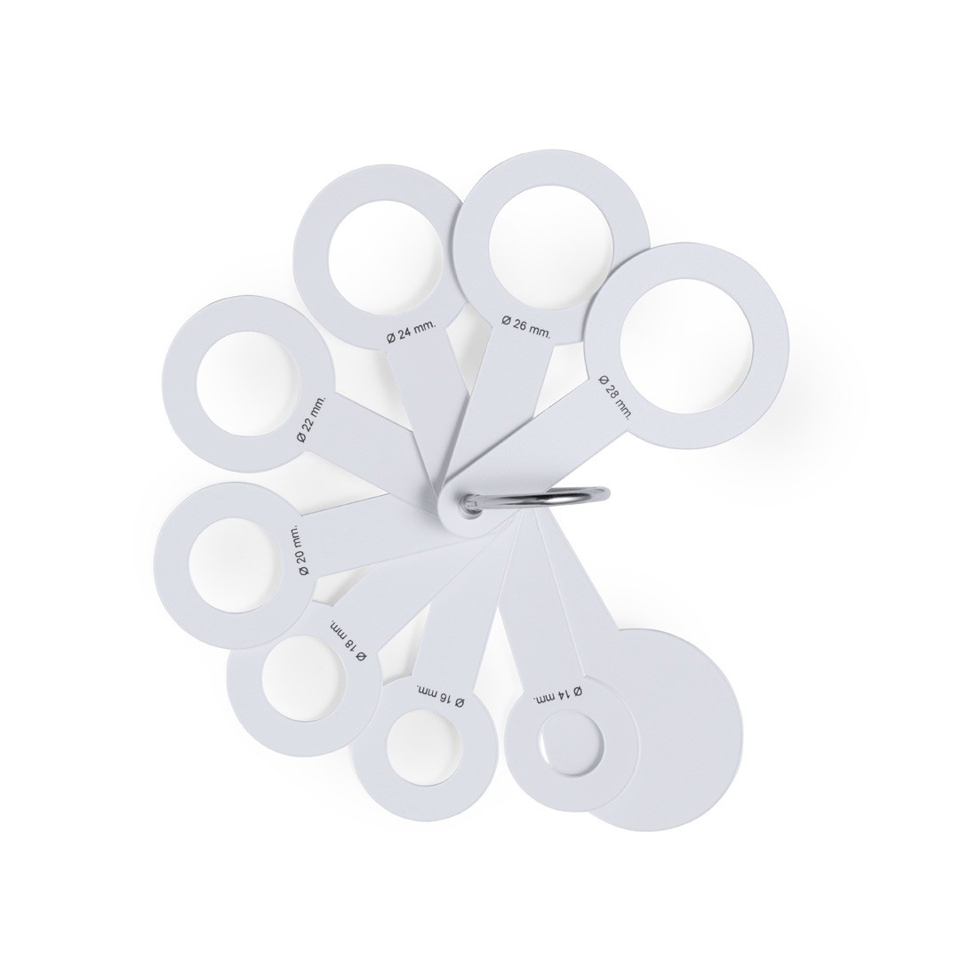 Calibrador manual fabricado en resistente PP. Para diá metros desde 14mm hasta 28mm, perfecto para la medición y clasificación a tiempo real y según tamaños. Cuenta con 8 plantillas que van aumentando gradualmente cada 2mm, una de ellas con superficie plana para marcaje. Unidos por una práctica anilla de transporte. 8 Accesorios. 14-28 mm PP