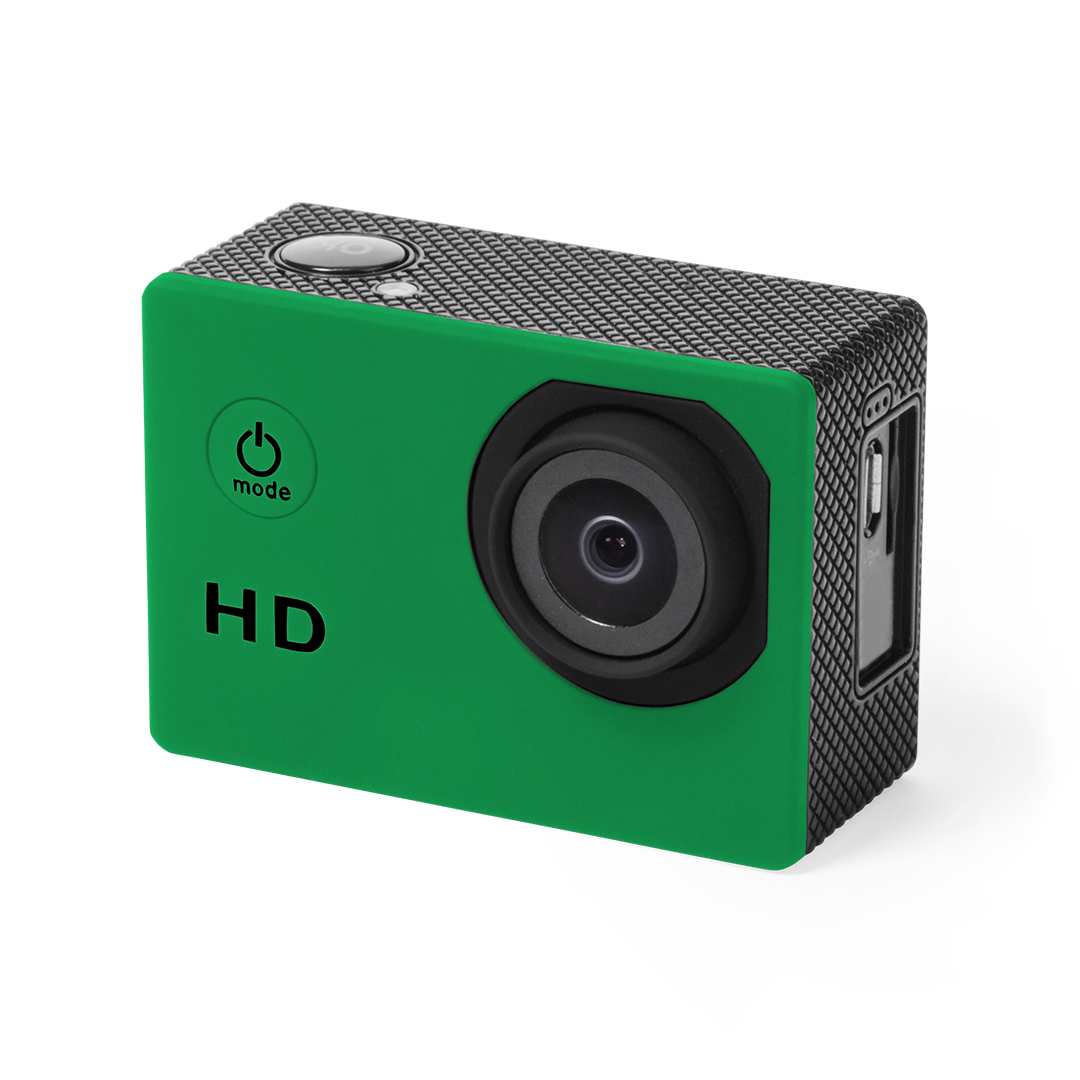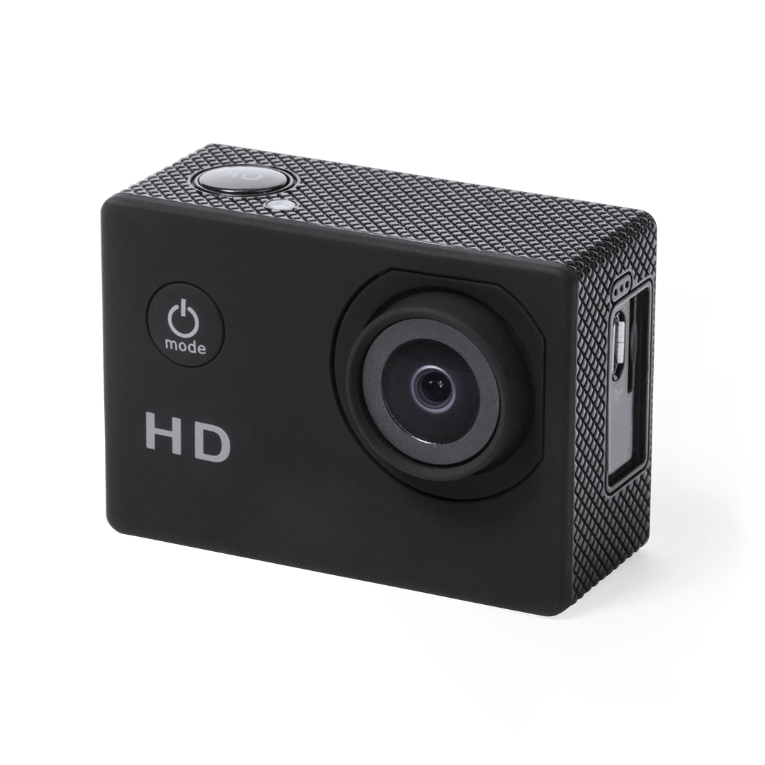 Cámara deportiva de alta calidad de captura de vídeo HD 720p, de diseño compacto y resistente, especialmente diseñada para uso intensivo. Incluye carcasa sumergible hasta 30m de profundidad y multitud de accesorios para ajuste en casco, manillar o cinturón, así como correas ajustables para cabeza y torso o un adaptador giratorio de 360º. La versatilidad y resistencia de esta cámara deportiva la convierten en el gadget perfecto para capturar, con una calidad excepcional, cualquier actividad deportiva. Con función cámara de fotos Full HD 1080p, ranura para tarjetas micro SD de hasta 32 GB de capacidad, sistema multilenguaje, y recargable mediante cable microUSB -incluido-. Presentada en atractiva caja de diseño. 720P. Pantalla LCD 2″. 14 Accesorios. Multilenguaje. Batería 900 mAh