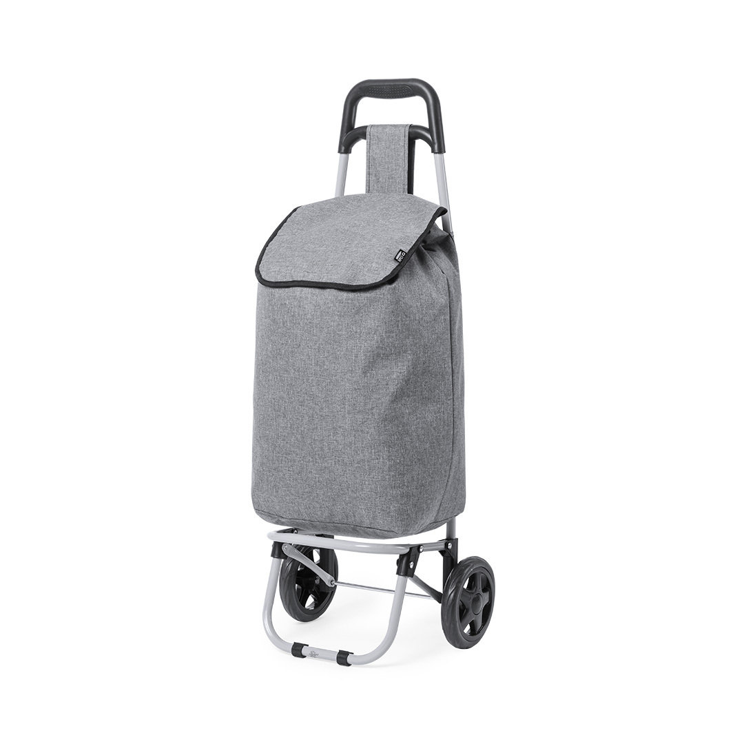 Carro de compra plegable y línea nature. Fabricado en resistente poliéster 600D RPET, elaborado a partir de plástico reciclado, para así fomentar la reutilización de residuos plásticos y ayudar a la sostenibilidad del planeta. Con asa reforzada, cuerpo metálico tubular, bolsillo de cremallera posterior y soportes con gomas de protección. Ruedas reforzadas de alta calidad. Etiqueta distintiva RPET en la solapa. Plegable Poliéster 600D RPET