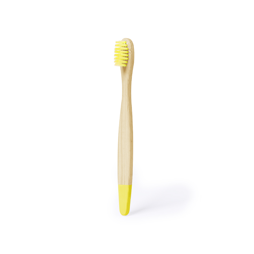 Cepillo de dientes fabricado en bambú. Para los más pequeños de casa, con cerdas y puntas en divertidos colores. Presentado individualmente en caja kraft. Materiales como el bambú fomentan la utilización de materias primas naturales, reduciendo las emisiones contaminantes. Proviene de una planta de gran resistencia y versatilidad, con crecimiento y regeneración rápidos, siendo una excelente alternativa al uso de madera tradicional. Bambú