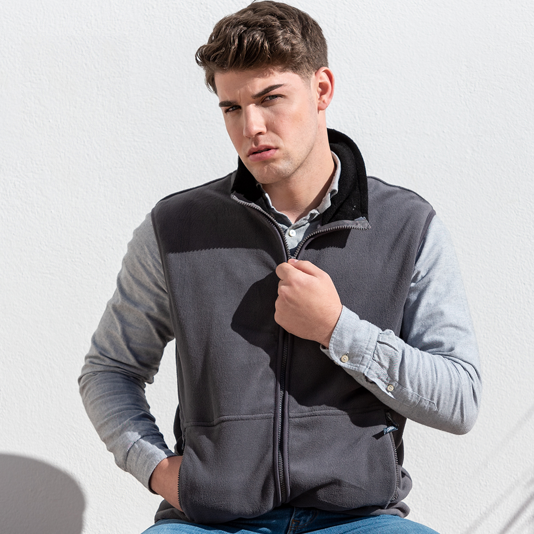 Chaleco en cálido y suave polar fleece de 280g/m2 con tratamiento anti-pilling. Con cuello de interior en color, cierre de cremallera con cinta en tirador, bolsillos laterales de cremallera y cintura elástica. Disponible en tallas M, L, XL, XXL. Tratamiento Anti-Pilling Polar Fleece 280 g/ m2
