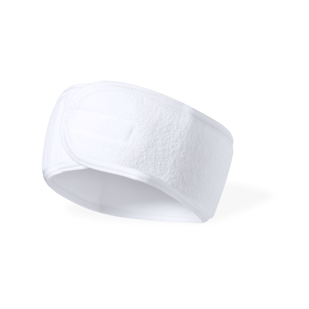 Cinta para pelo fabricada en suave poliéster. Banda ajustable a la cabeza con velcro para despejar el pelo de la cara mientras se aplican los tratamientos beauty. Poliéster
