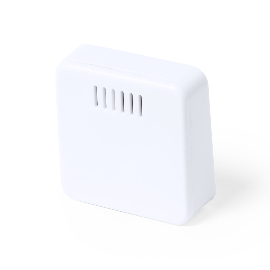 Estación meteorológica fabricada en resistente ABS de acabado blanco. Pantalla LCD de fácil lectura con termómetro y medidor de humedad. Fijación magnética y alimentación con pila (de botón incluida, con film protector). Presentada en caja individual de diseño kraft, con manual de instrucciones en español e inglés. Magnético. Pila Botón Incluida