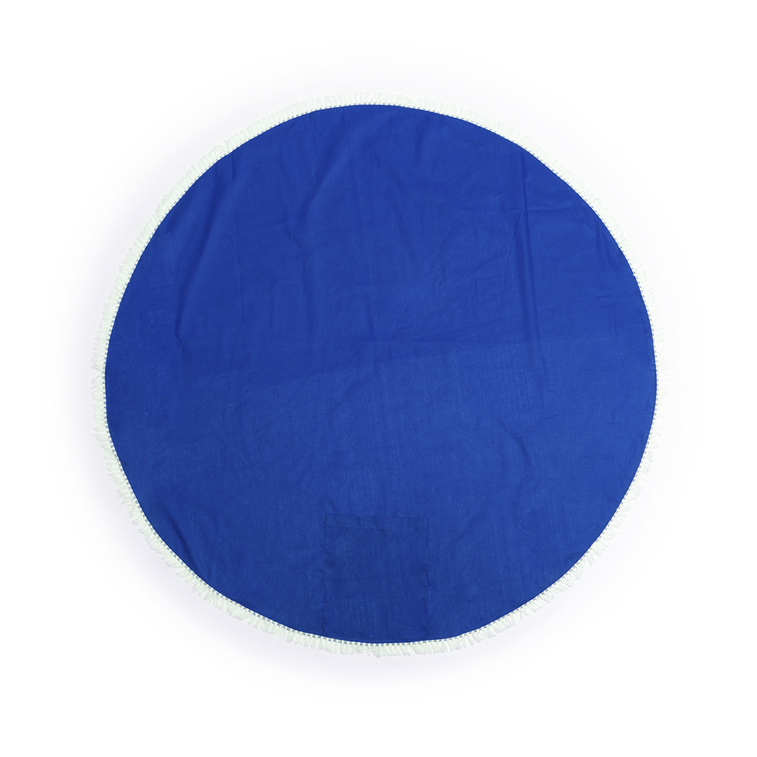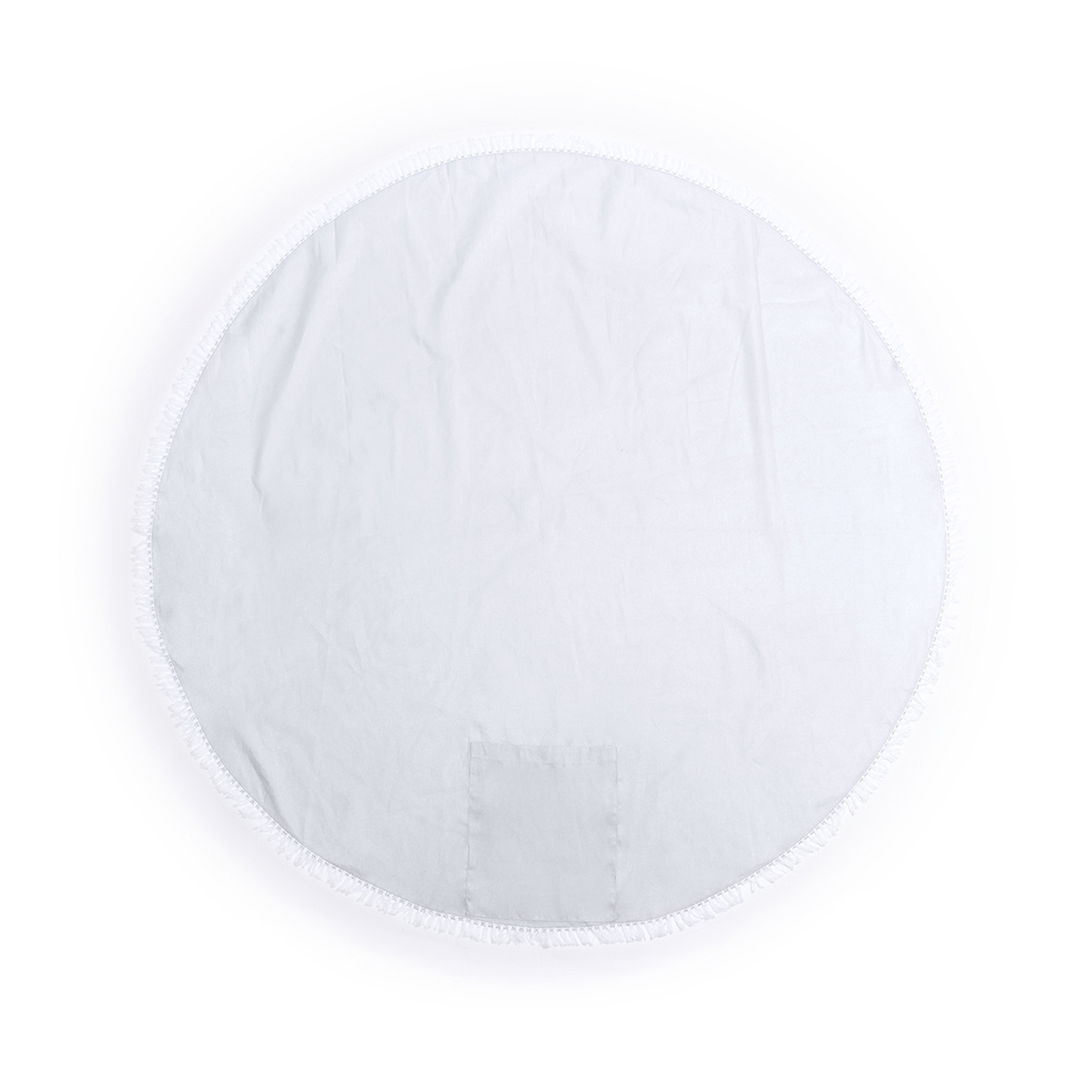 Esterilla en material 100% algodón de 125g/m2 en original diseño circular de vivos colores y terminación en flecos. 100% Algodón 125 g/ m2