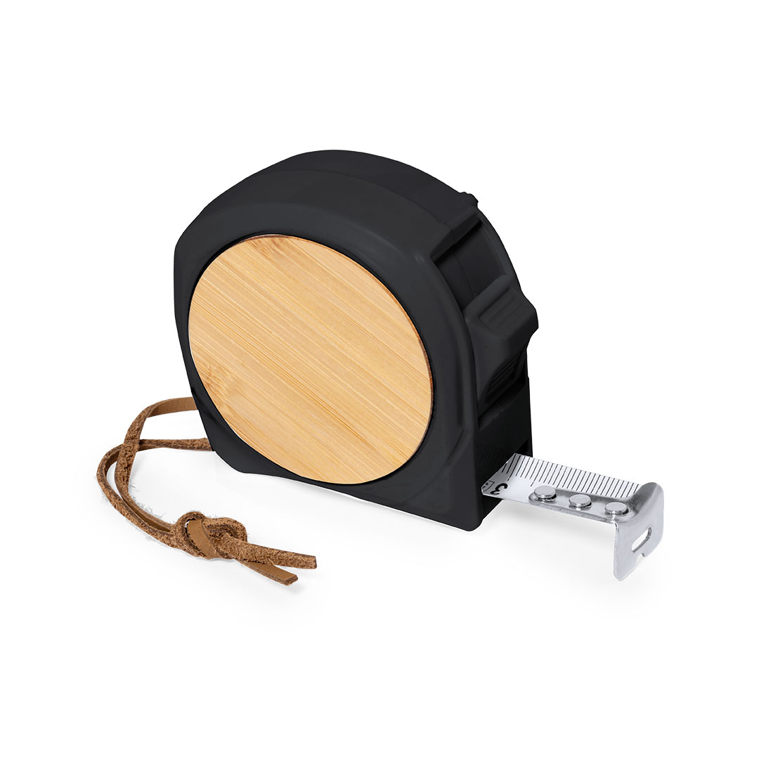 Flexómetro de 5 metros de línea nature, fabricado en combinación de bambú y ABS con tacto goma. Hoja metálica con freno, clip metálico para cinturón y cinta de transporte en PU. Con amplia superficie de marcaje y presentado en atractiva caja de diseño eco.   Con Freno y Clip Incluido   Bambú/ ABS