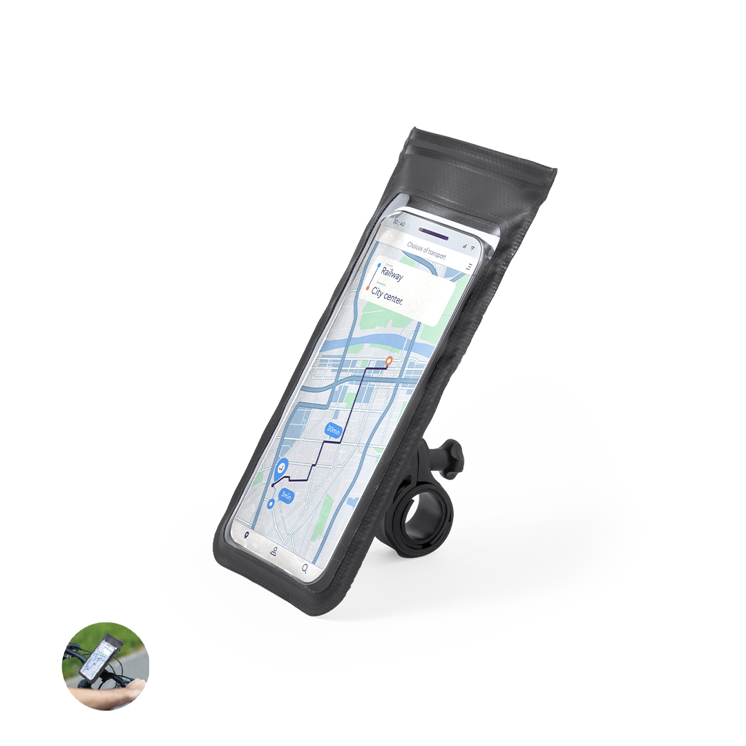 Funda táctil para smartphone diseñada para bicicletas. Fácil de enganchar a cualquier manillar mediante un tornillo de montaje sencillo y gomas de presión. La funda cuenta con un clip de enganche y viene presentada en una bolsa individual reciclada. Pantalla Táctil PVC
