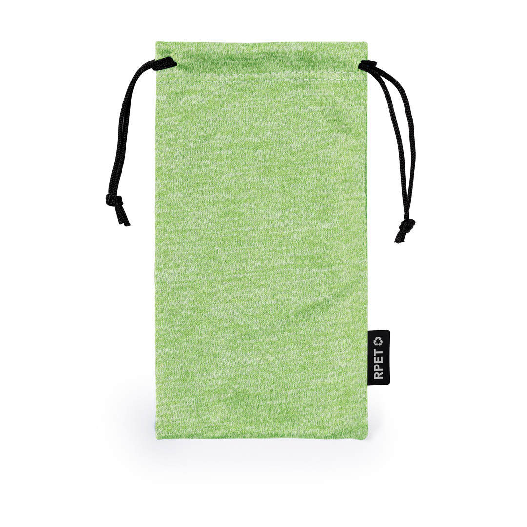 Funda para gafas en suave microfibra RPET y amplia gama de divertidos colores, con cordones autocierre. Con logotipo en etiqueta. El material RPET se elabora a partir de plástico reciclado, para así fomentar la reutilización de residuos plásticos y ayudar a la sostenibilidad del planeta. Poliéster RPET