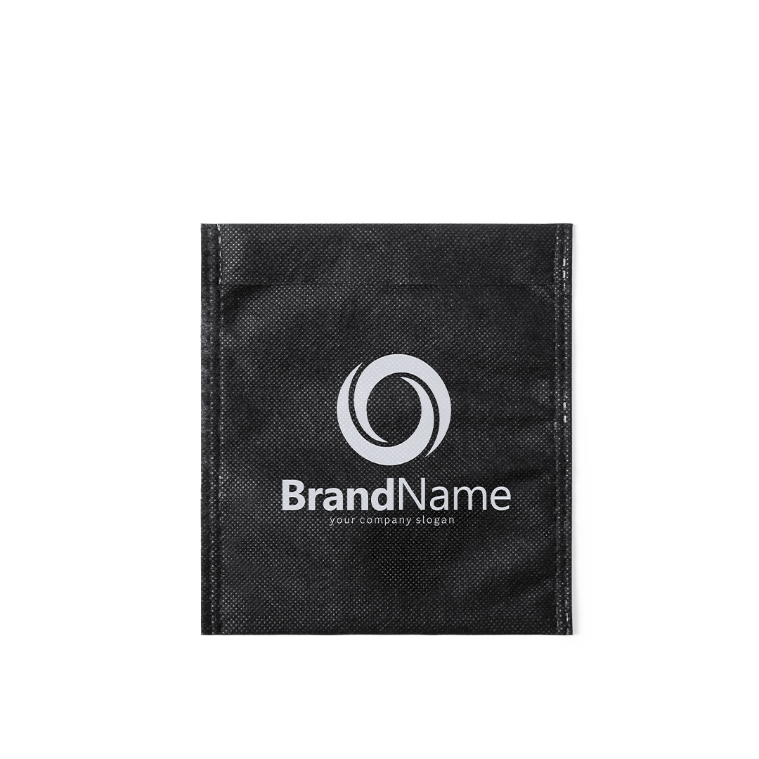 Funda multiusos fabricada en tejido non-women de color negro y acabado termosellado, transpirable y lavable. De tamaño compacto e ideal para impresión. Non-Woven