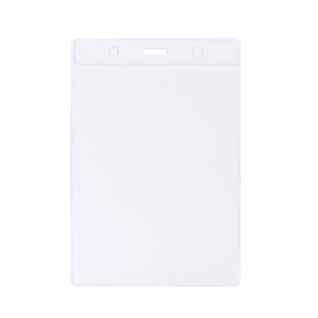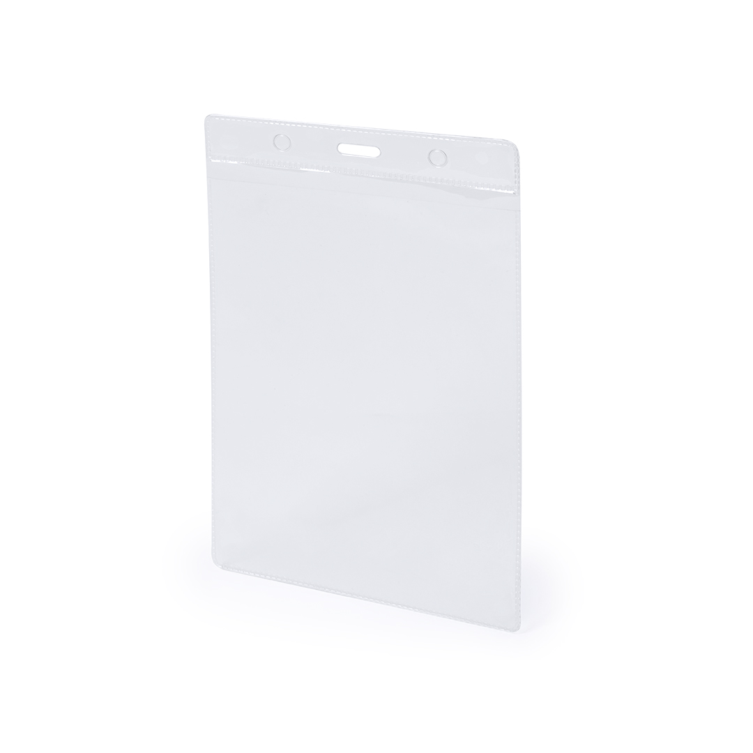 Identificador vertical de PVC. Práctico porta acreditaciones con parte superior reforzada y perforaciones tanto para la sujeción central como en los laterales.     PVC