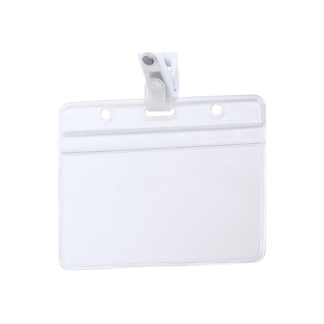 Identificador troquelado en PVC con clip de fijación en color blanco. Disponible en diseño horizontal y vertical. PVC