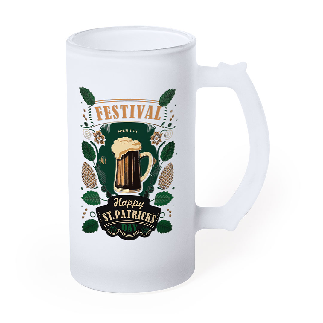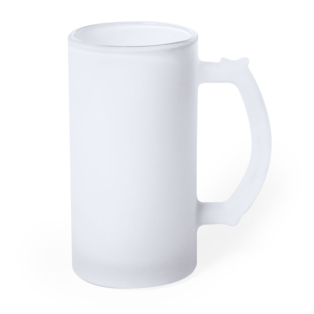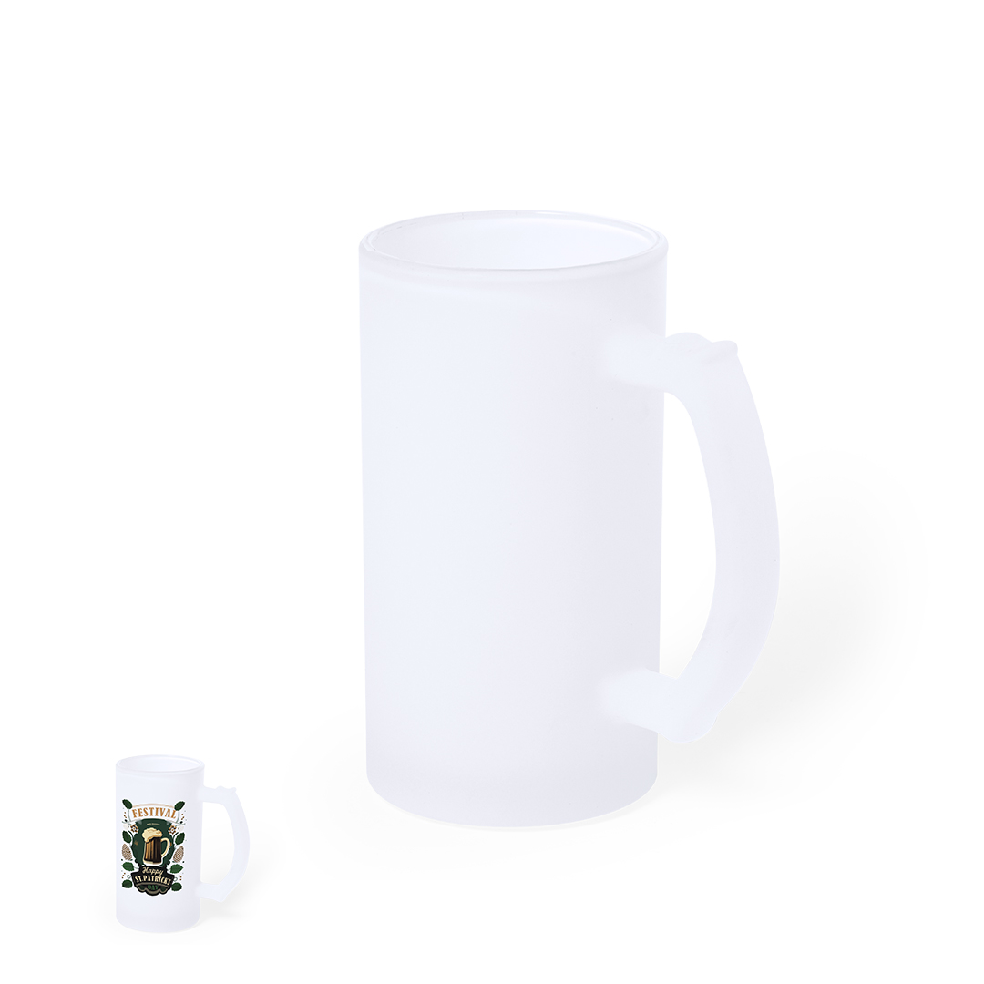Jarra de cristal de acabado mate. De 500 ml de capacidad y con cómoda asa. Especialmente diseñada para la sublimación. Apta para microondas y presentada en caja individual kraft. 500 ml Cristal