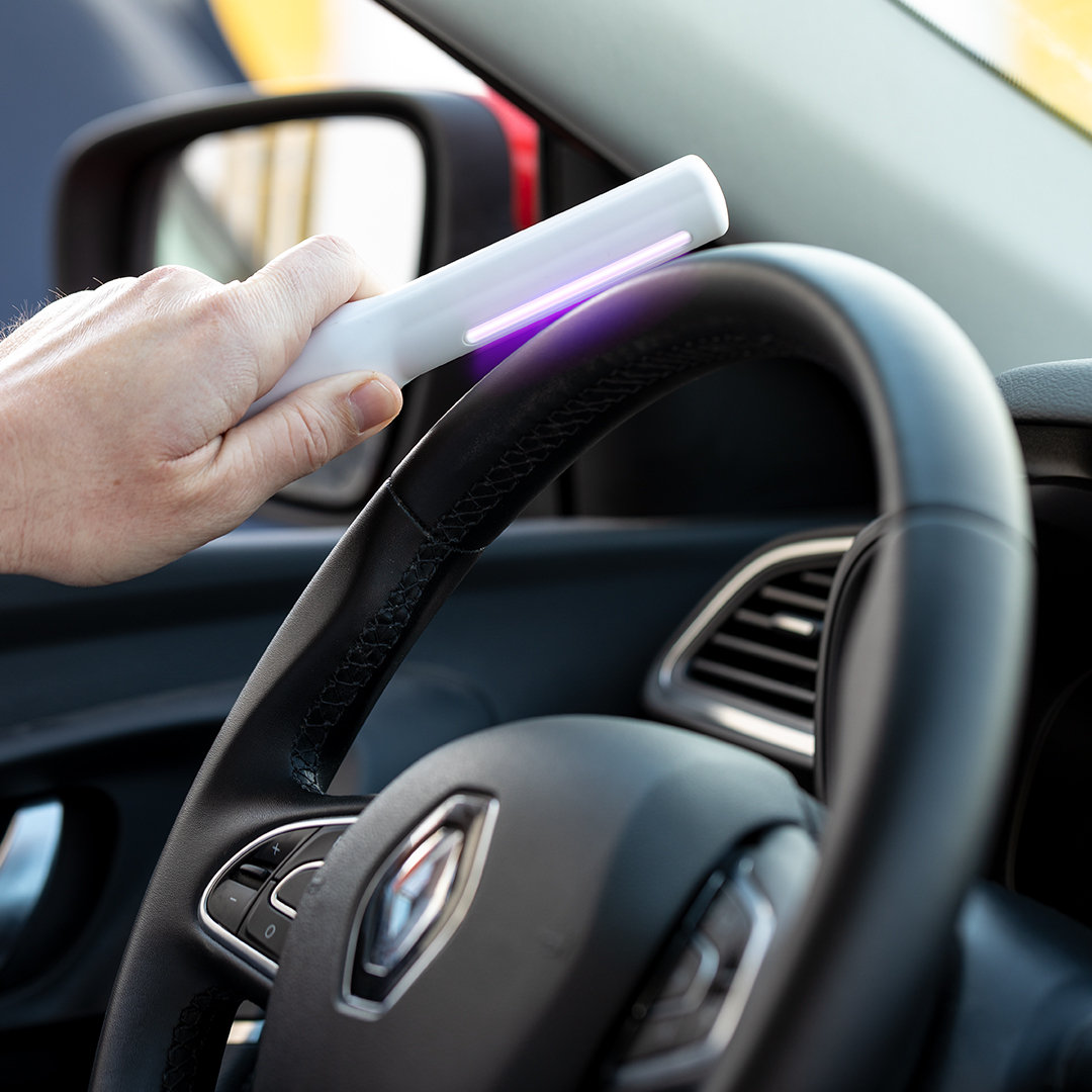 Lámpara esterilizadora de luz ultravioleta tipo C. Especialmente diseñada para la eliminación de microorganismos y bacterias en objetos de uso cotidiano como el smartphone, el carrito de la compra, el volante del coche o la ropa. Fácil de usar, basta con acercar la lámpara esterilizadora al objeto durante unos segundos, a una distancia de entre 1 y 2 cm. Potencia de bombilla 1W, longitud de onda de 254 nm y voltaje 3V, con alimentación a pilas (2xAAA no incluidas). Fabricada en resistente material ABS de acabado mate y presentada en atractiva caja individual de diseño. Disponible manual de usuario en español e inglés. Disponible certificación CE, RoHS y de efectividad germicida. Para un uso adecuado del producto, evitar el contacto con la piel y los ojos. Luz Ultravioleta. 2 Pilas AAA No Incluidas