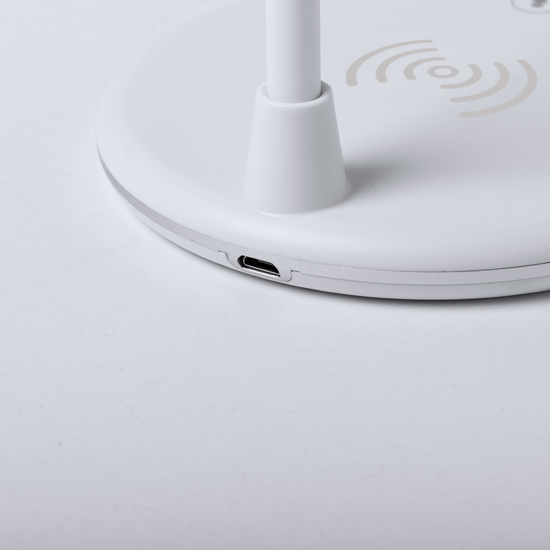 Lámpara multifunción todo en uno en acabado blanco, con altavoz Bluetooth 4.2 de 3W de potencia y cargador inalámbrico integrados. 14 LEDs y 3 posiciones de iluminación (cálida, fría y media), ajustable en altura. Compatible con dispositivos móviles de carga inalámbrica, con cable cargador micro USB y viene presentada en una atractiva caja de diseño. Flexible. 3 Posiciones de Luz. Intensidad de Luz Regulable. Altavoz Conexión Bluetooth. Potencia Sonido 3W. Conexión USB. Cargador Inalámbrico 10W 14 Ledes