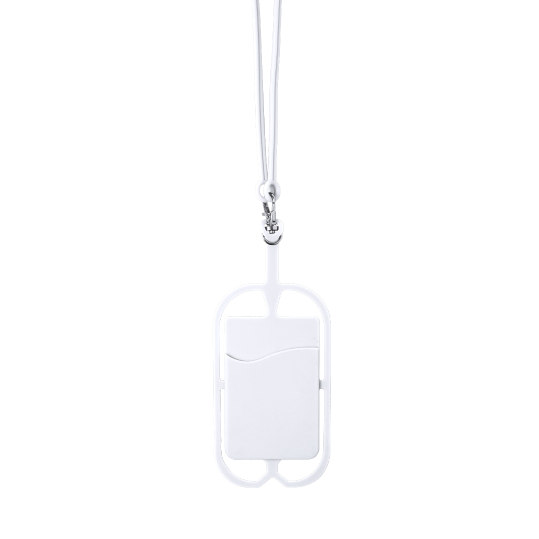 Práctico y confortable lanyard de silicona en atrevidos colores con soporte para smartphone integrado y bolsillo tarjetero. Con accesorio de ajuste y cierre de mosquetón.Este artículo sólo puede imprimirse en 1 color (blanco/negro). Silicona