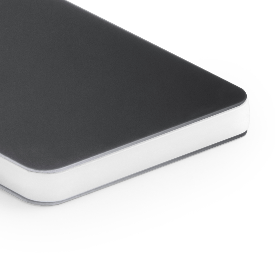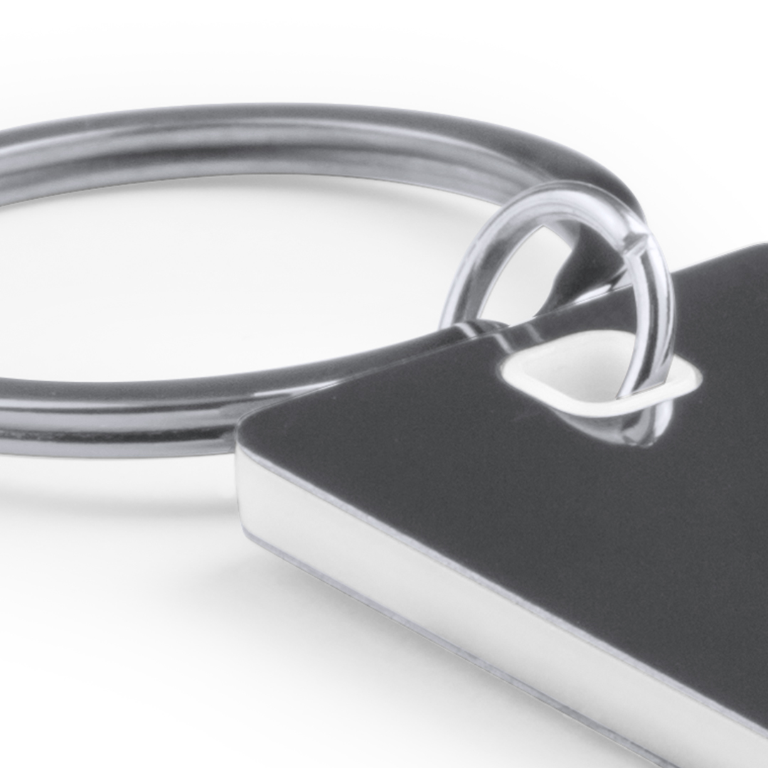 Llavero de acero inox en diseño bicolor de variados colores y especialmente diseñado para marcaje en láser.     Acero Inox