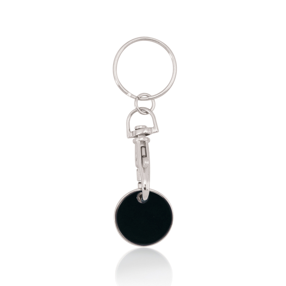 Llavero moneda metálico en divertido diseño de variados colores con moneda extraíble y cierre de mosquetón.     Metal