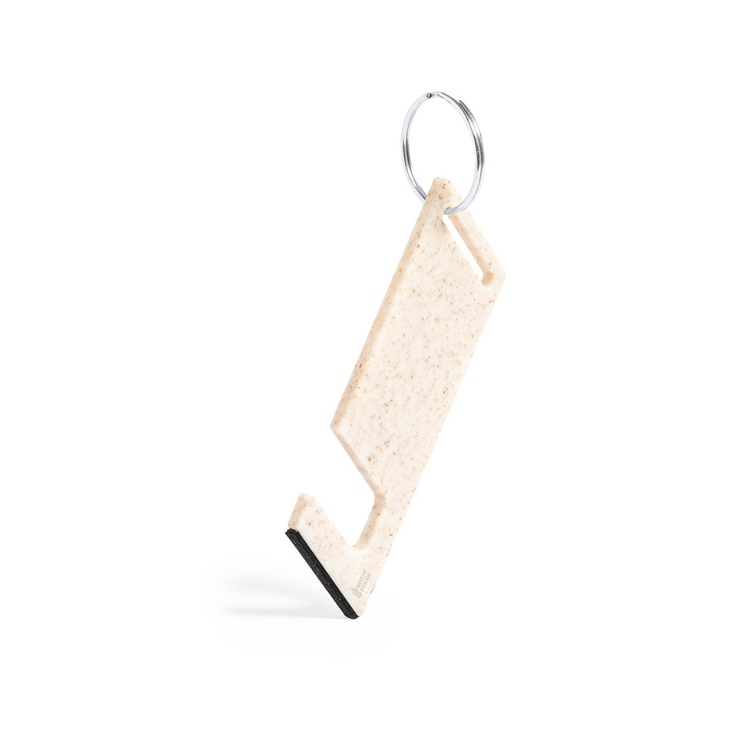 Llavero multifunción de línea nature fabricado en caña de trigo, para así fomentar la utilización de materias primas naturales y reducir las emisiones contaminantes. Con soporte para smartphone integrado y accesorio limpiapantallas incluido. Con distintivo caña de trigo en el cuerpo del llavero.   Limpiapantallas Incluido   Caña de Trigo/ ABS