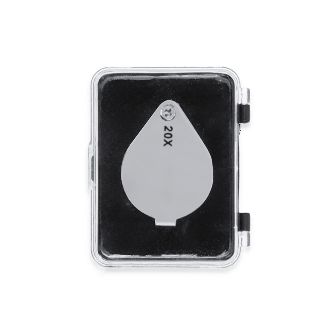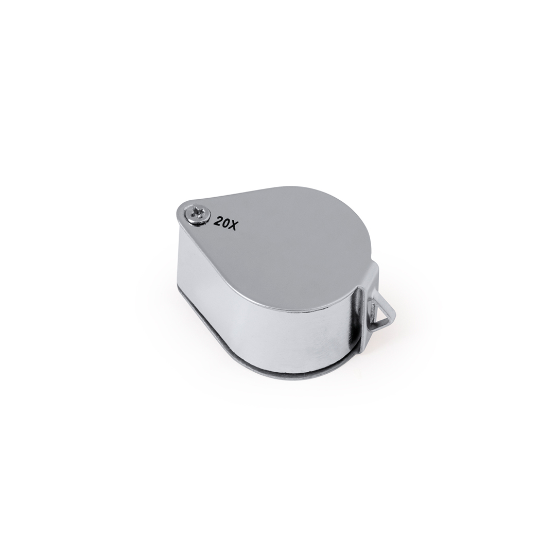 Lupa plegable con aumento 20x fabricada en resistente metal. Gran potencia de aumento para obtener una visión muy cercana de los detalles más pequeños, con ampliación sin distorsión. Ideal para inspeccionar objetos de tamaño reducido, textos, etc. Además, tiene un accesorio para colgar y viene dentro de un estuche con interior acolchado para una mayor protección. Presentada en caja de cartón negra. Metal