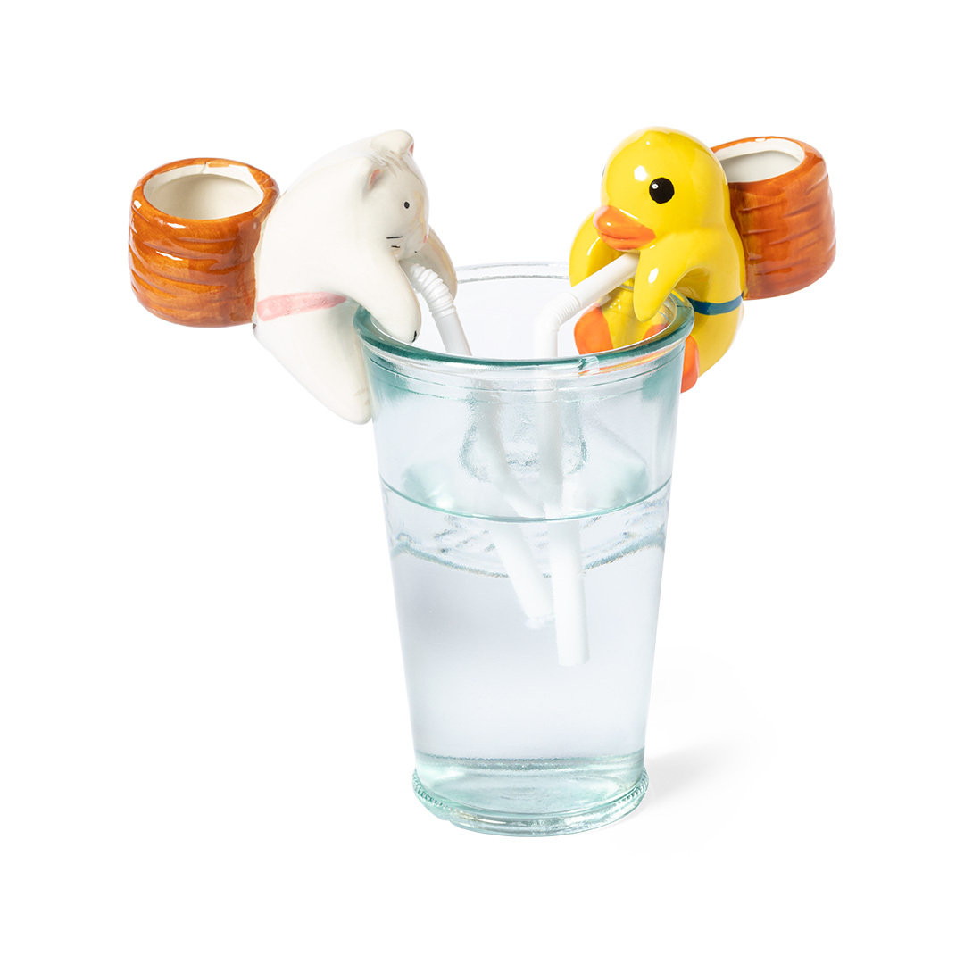 Maceta chupón en divertidos diseños de pato y gatito. Solamente hay que dejar la pajita en contacto con el agua para que la absorba y así florezcan unas espectaculares petunias. Cuerpo en cerámica, con 10-12 semillas incluidas. Presentada en atractiva caja de diseño. 10-12 Semillas de Petunia Incluidas. Flores Colores Surtidos Cerámica
