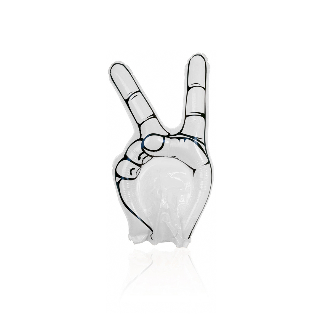 Divertida mano de animación victoria en resistente material LDPE de vivos colores. Reutilizable y con válvula de inflado incluida. Reutilizable. Válvula Inflado Incluida LDPE