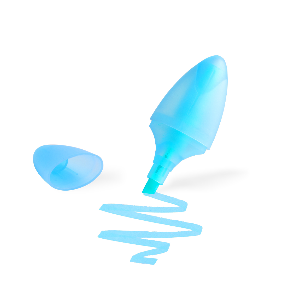 Marcador fluorescente diseño minimalista en divertidos colores, con cuerpo y capucha en acabado translúcido.