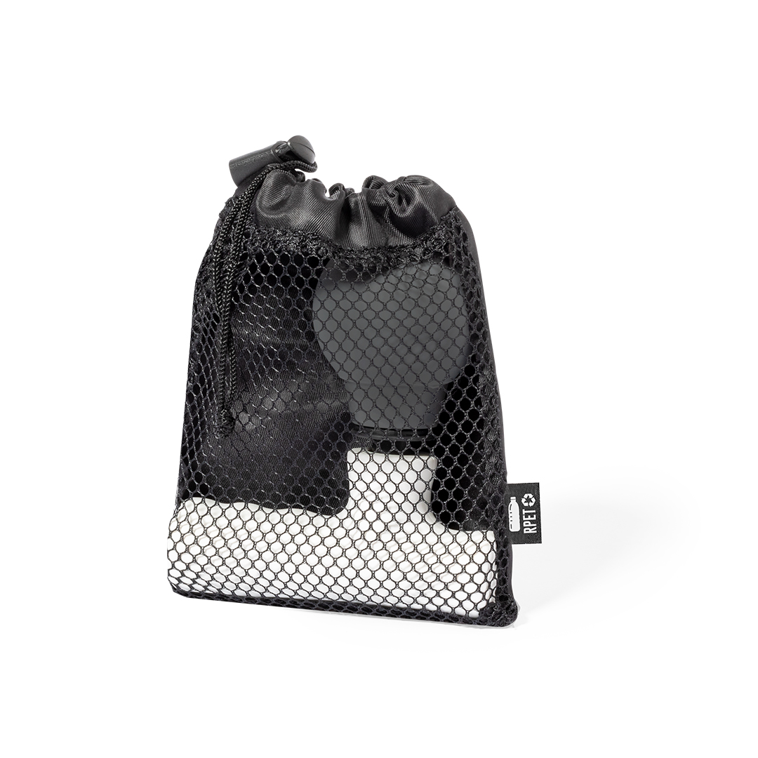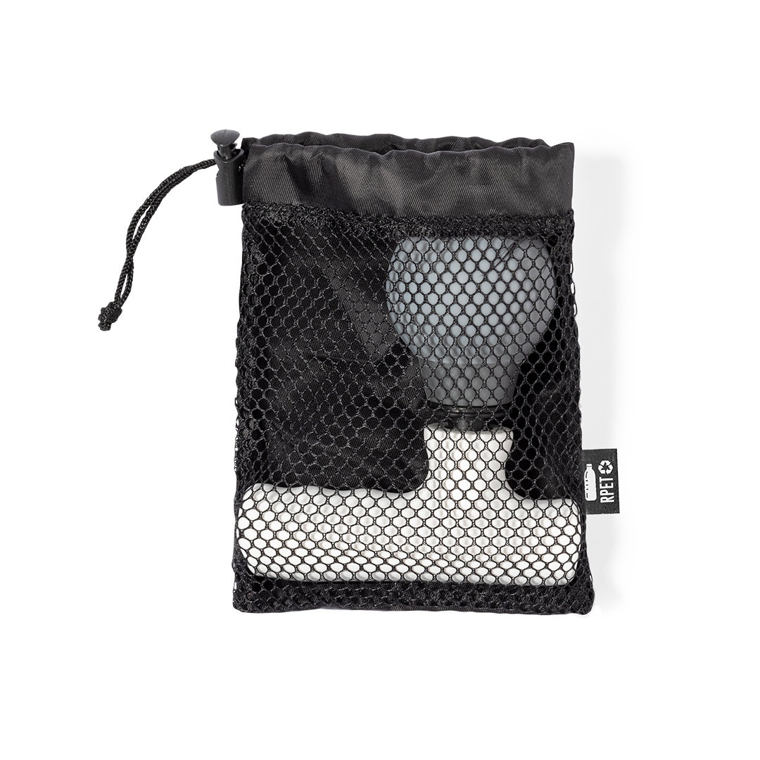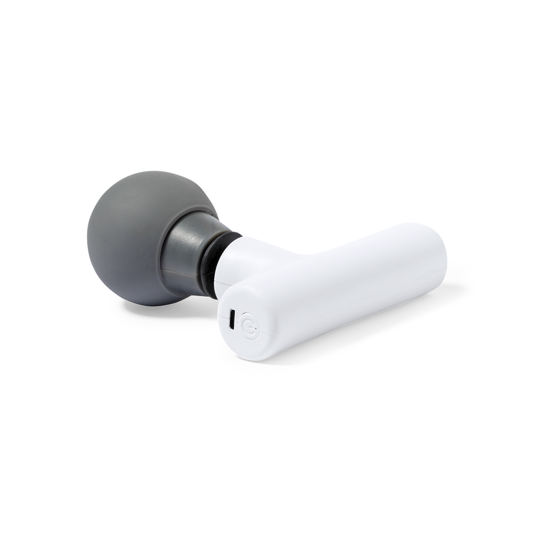 Masajeador eléctrico. Ayuda a relajar los músculos, aliviar los efectos del entrenamiento, liberar tensión y revitalizar el cuerpo. Con dos posiciones de intensidad. Batería recargable de larga duración de 800 mAh – cable USB incluido-. Con manual de uso en español e inglés. Presentado en funda de poliéster RPET con cierre de cordón, elaborada a partir de plástico reciclado para así fomentar la reutilización de residuos plásticos y contribuir a la sostenibilidad del planeta. Etiqueta distintiva RPET en la funda.   2 Posiciones. Batería 800 mAh. Funda Poliéster RPET