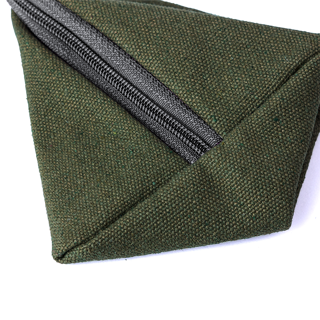 Original monedero en forma de pirámide, fabricado en resistente canvas. Bolsillo con cierre de cremallera y cinta de transporte larga. Disponible en varios colores. Canvas