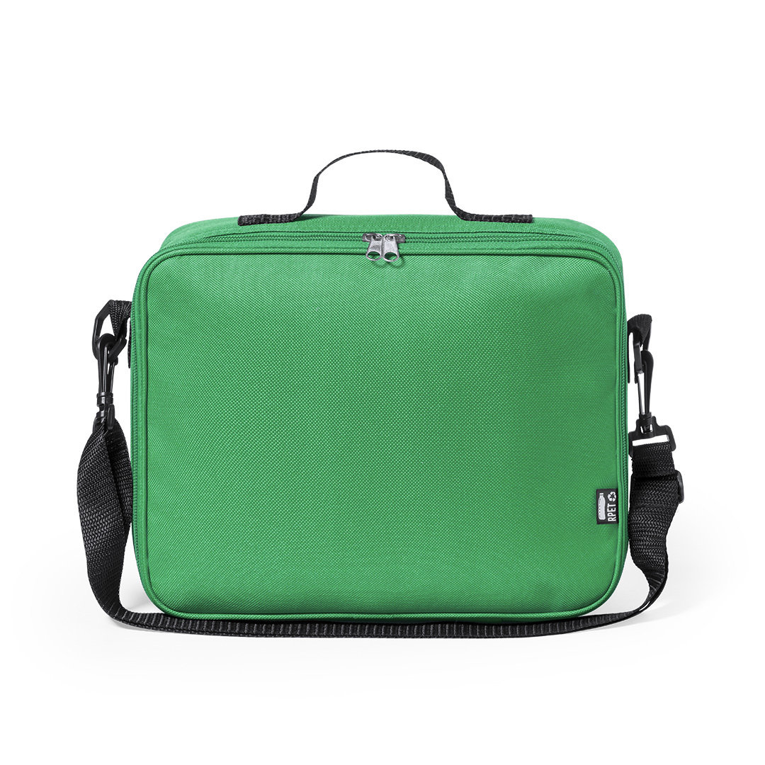 Nevera para niño de línea nature y en resistente 600D RPET, elaborado a partir de plástico reciclado para así fomentar la reutilización de residuos plásticos y contribuir a la sostenibilidad del planeta. Detalles en negro y base reforzada. Compartimento principal con cierre de cremallera e interior isotermo en aluminio. Incluye cinta bandolera ajustable y asa de transporte reforzada. Con distintivo RPET en etiqueta exterior y disponible en variada gama de colores. Poliéster 600D RPET/ Aluminio