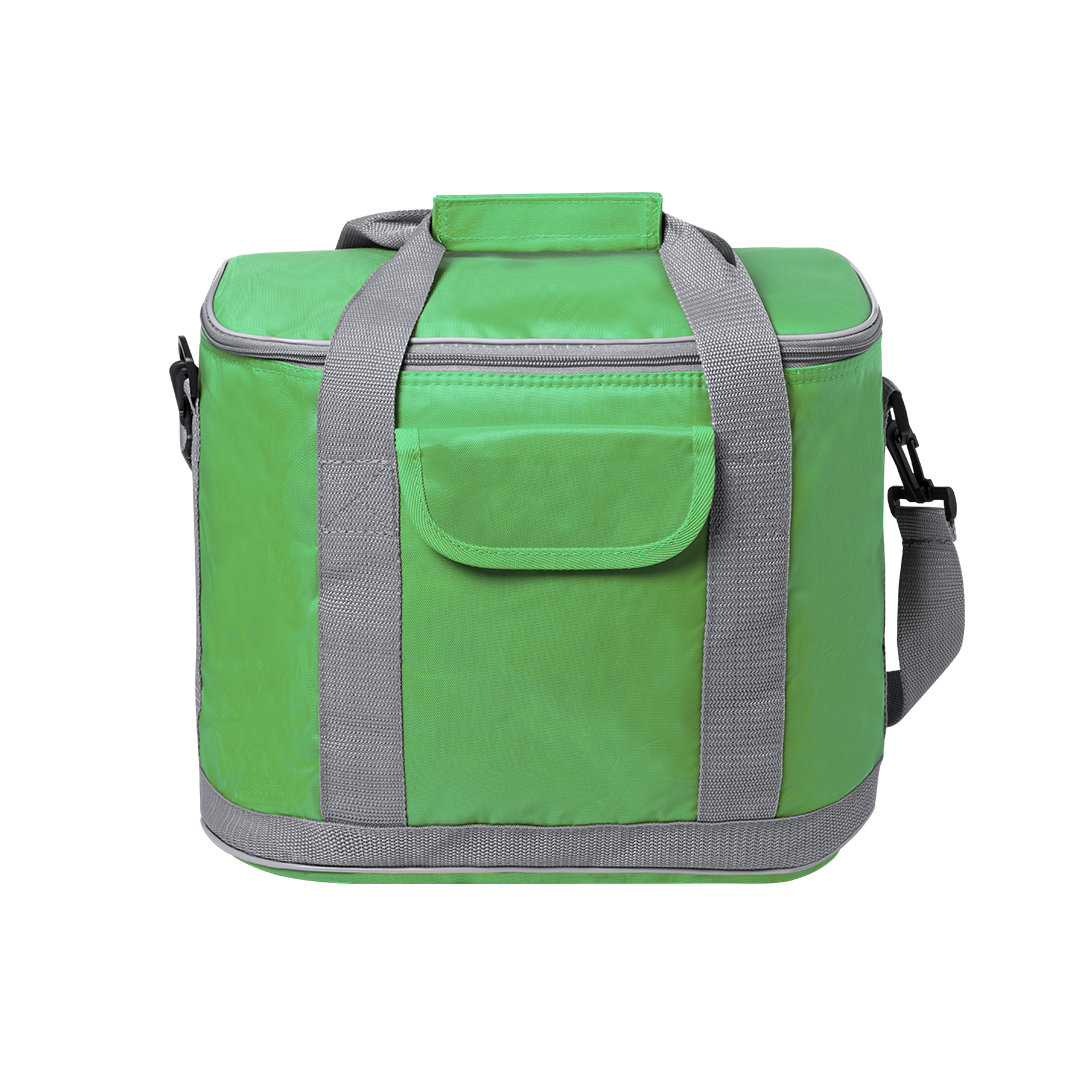 Nevera todoterreno en resistente poliéster 420D, con compartimento principal de cierre de cremallera y bolsillo en parte frontal con cierre de velcro. Interior isotermo en PEVA, con cinta para hombro ajustable y mosquetón de enganche. Resistencia hasta 8kg de peso. Poliéster 420D/ PEVA