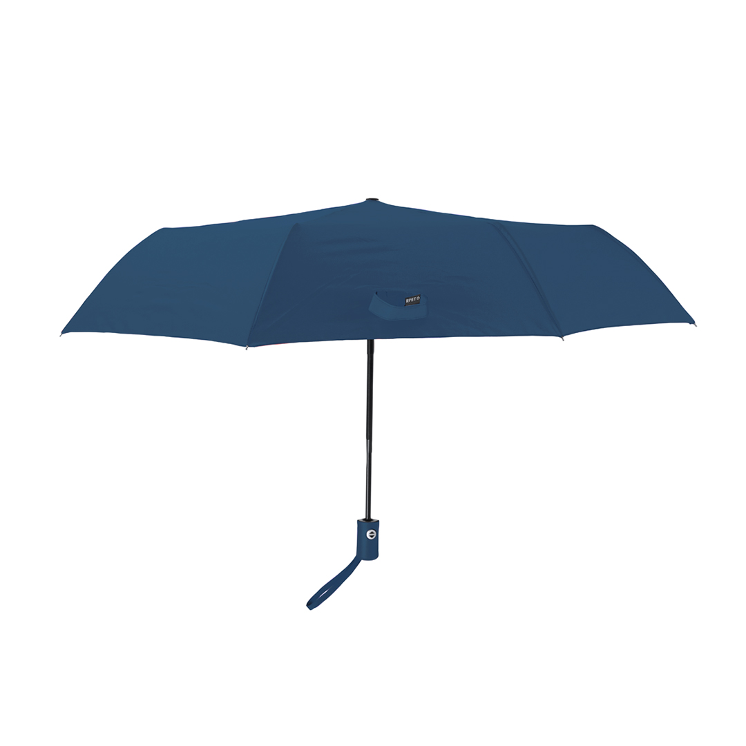Paraguas plegable de 98 cm de diámetro en material pongee 190T RPET de 8 paneles. Con apertura y cierre automáticos, sistema antiviento y varillas en fibra de vidrio. Mango de suave tacto goma, funda de transporte y cinta a juego. Con etiqueta RPET.El material RPET se elabora a partir de plástico reciclado, para así fomentar la reutilización de residuos plásticos y ayudar a la sostenibilidad del planeta. 21″. Apertura y Cierre Automático. Sistema Antiviento. Funda Pongee RPET Pongee 190T RPET. Varillas Fibra de Vidrio