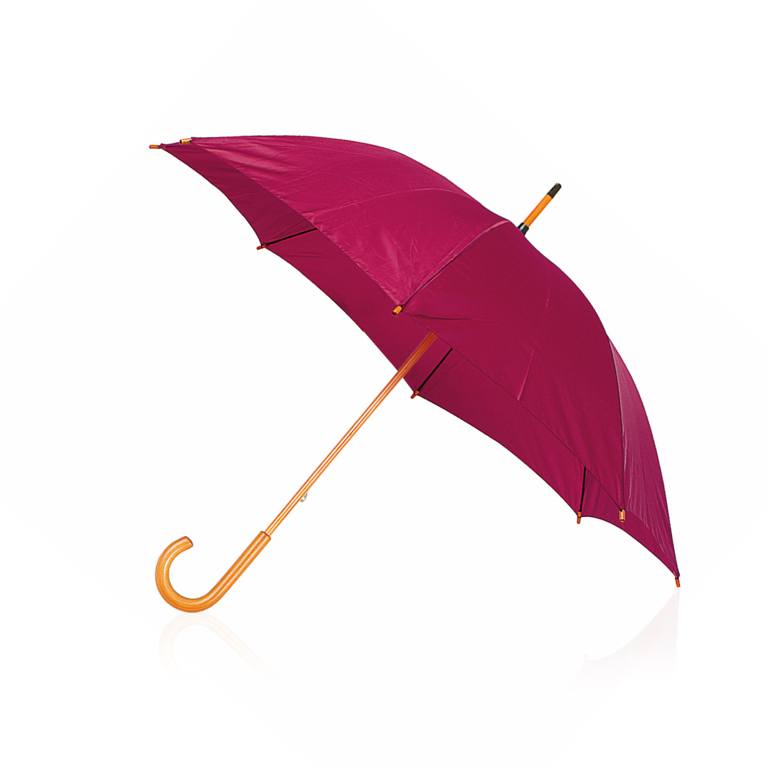 Paraguas de 8 paneles confeccionado en poliéster. De 105cm de diámetro, con apertura manual, varillas metálicas en color negro y cierre de velcro. Palo y mango fabricados en suave madera de color natural, con tela en variada gama de vivos colores. 23″. Mango y Caña Madera Poliéster 190T. Varillas Metal